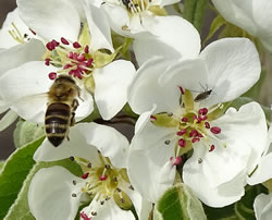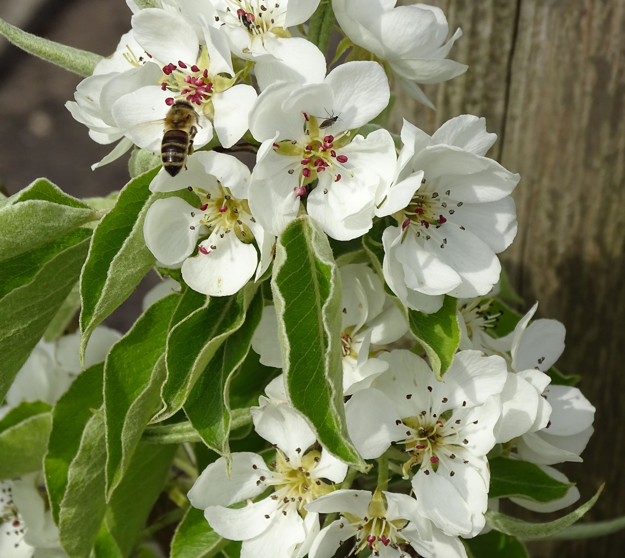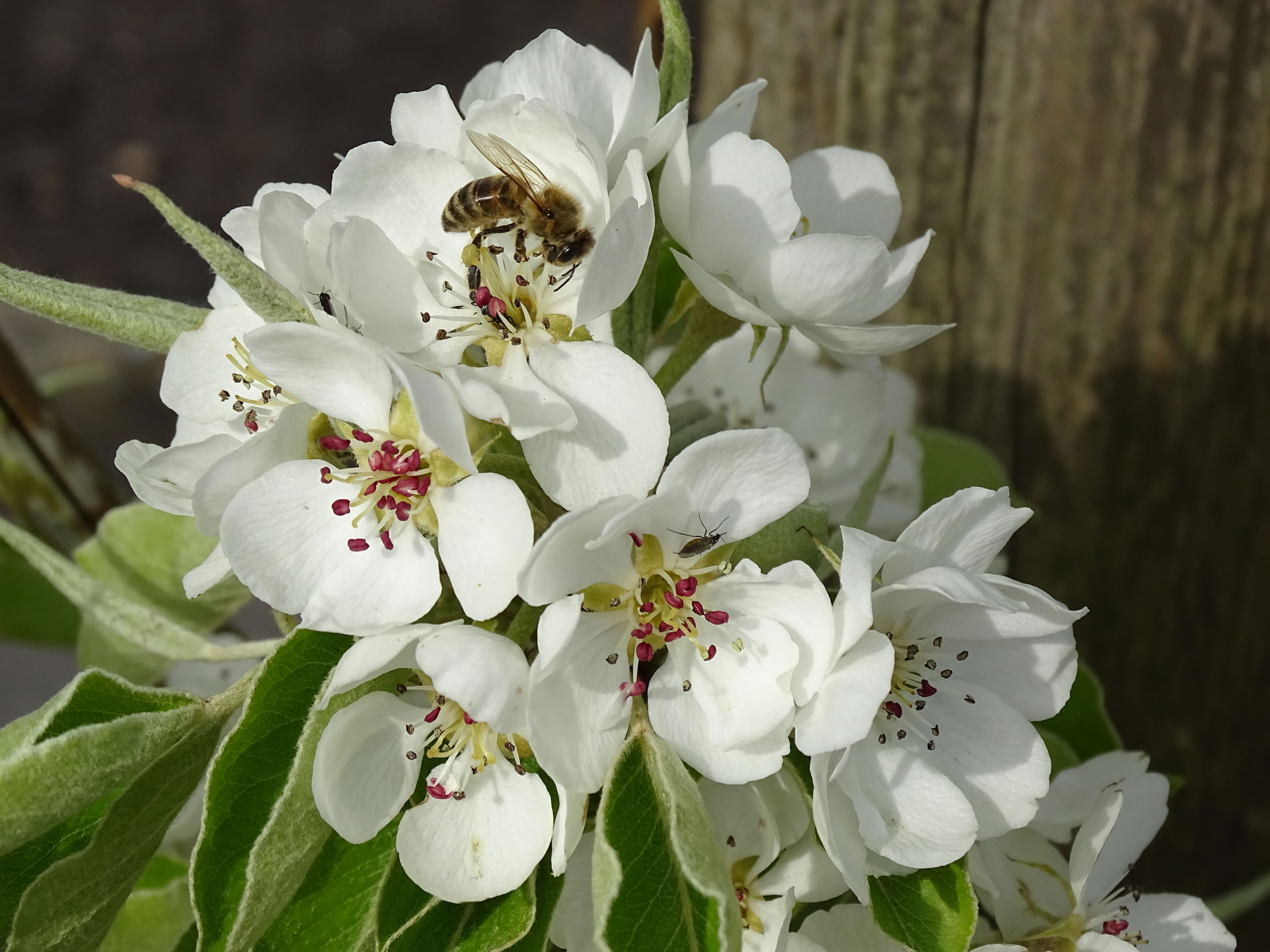 In Pagels' Goorn in Leer an't Appelspalier heff ik düsse wunnerschöne Imm knipst, de in Gesellschap vun en lierlütt Flegendeert freedlich ehr Arbeit nageiht. Op en gode Appelaarn in'n Harvst! De Biller köönt Se per Klick