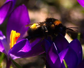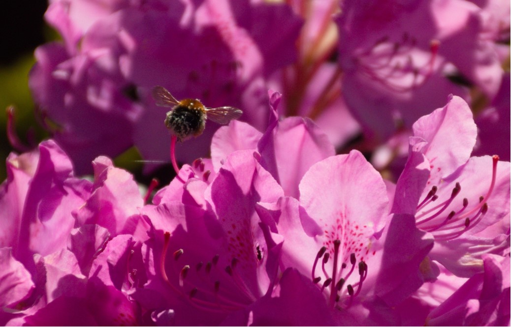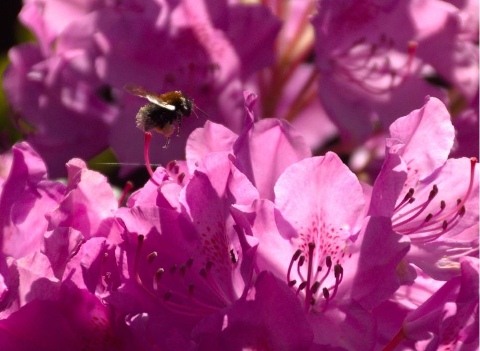 wiest se as Boomhummel ut. Villicht is dat en He, de sünd lütter.
