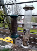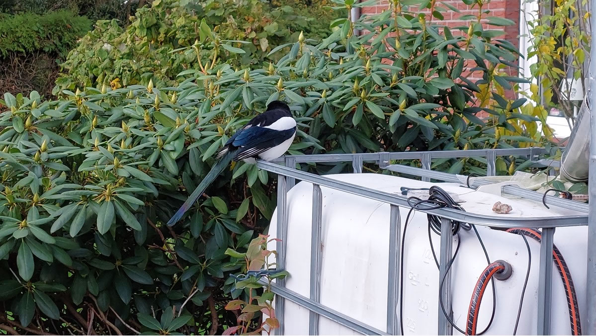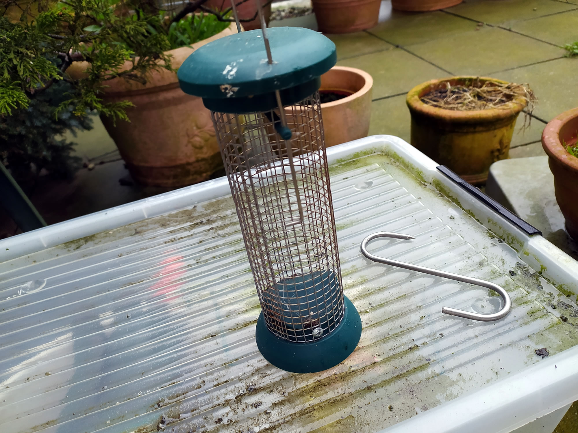 Ik heff ehr utschüddt ut den Deckel baven, un se is foorts wegsluppt. De Vagelröhr mutt ik reinlich maken un höger hangen. De Muus is op mien Terrass willkamen, avers se schall vun dat leven, wat de Vagels rünnerfalln laat. De Biller köönt Se per Klick vergröttern! Marlou Lessing |