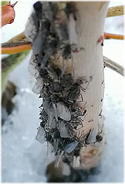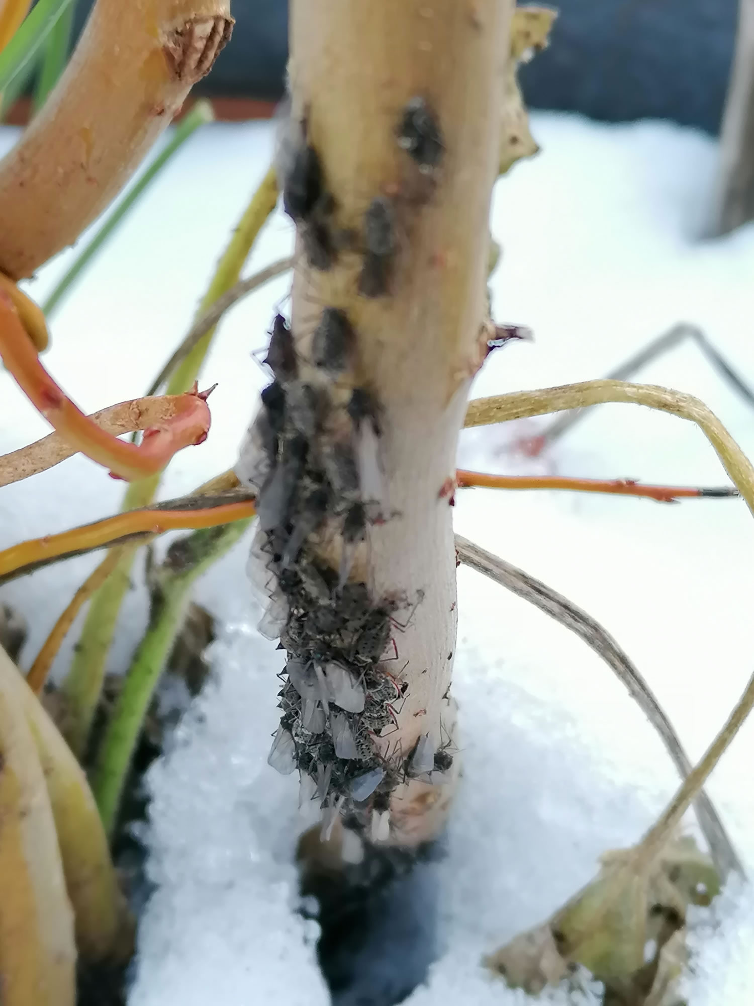 Man sogor dor seet en Uul: Ut de eersten Löcker, de se probeert hebbt, sünd se rutflagen lütte Spinnen un anner Insekten sünd dor apensichtlich nu al introcken! Much dat man en godes Omen för en levig Goornjohr ween. De Biller köönt Se per Klick