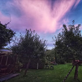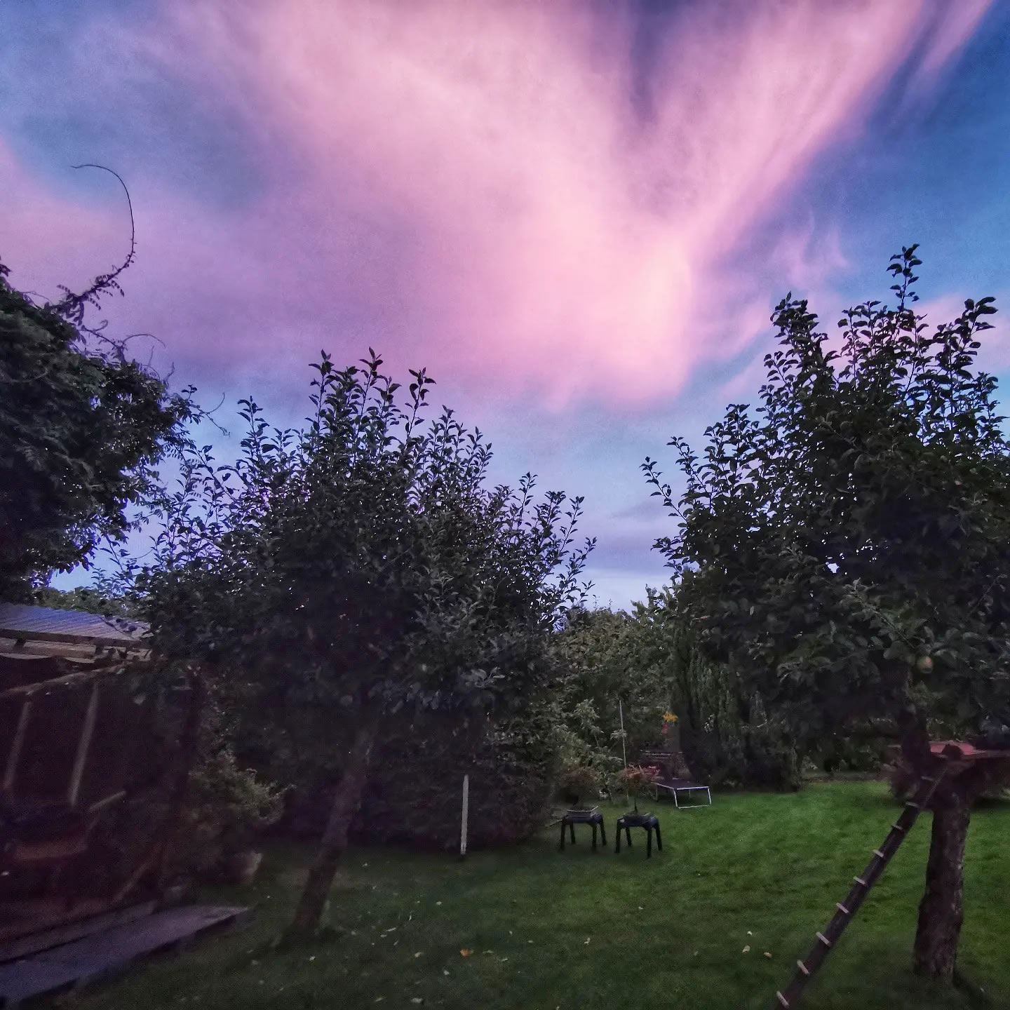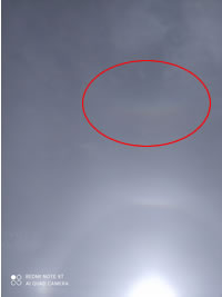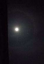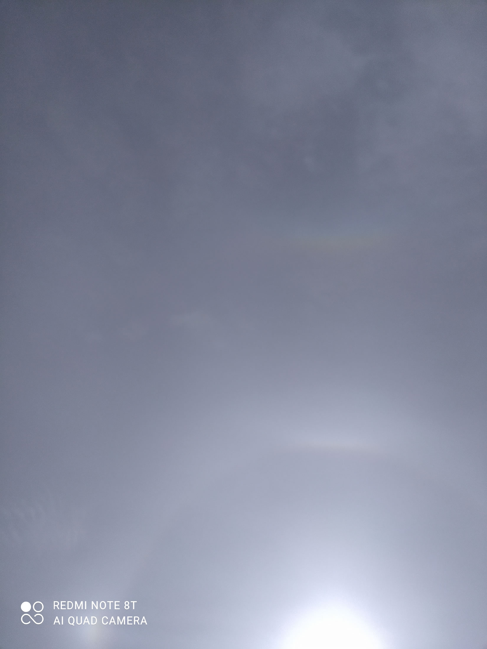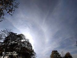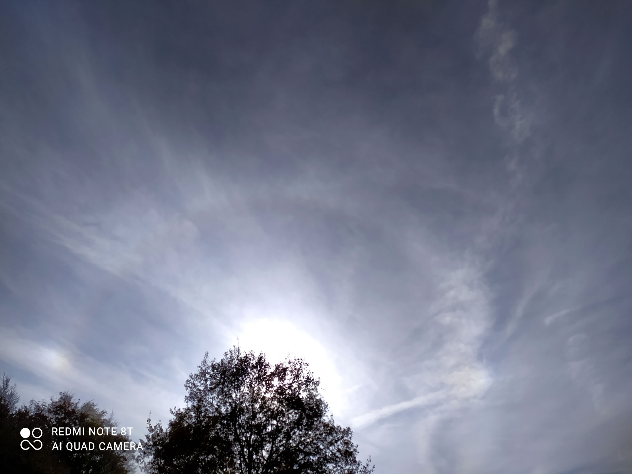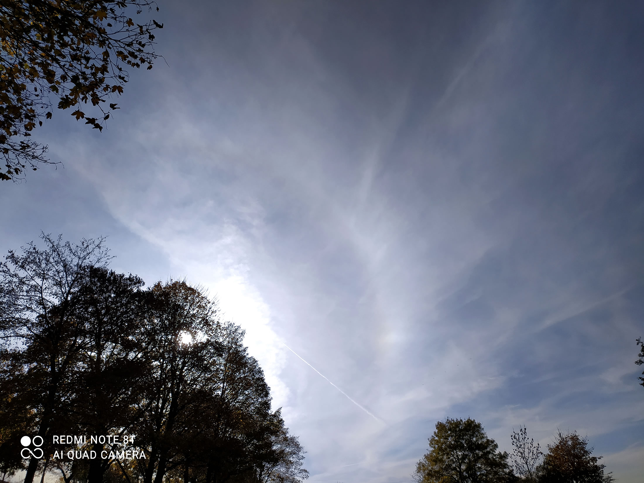 so Eerst nu heff ik sehn, wat dor allens to sehn weer: de kumplette 22-Grad-Halo mit bavern Berührungsbagen un bavenöver noch wat (Bild links in'n roden Krink) is dat de Zirkumzenitalbagen orr etwa de rore, extrem rore 46-Grad-Halo? Ik harr dat al an'n Himmel schemern sehn un heff dat Handy eenfach hoochhollen... Sowat Schööns un Besünners faat mi so an, dat mi nu noch de Tranen kaamt. De Biller köönt Se per Klick