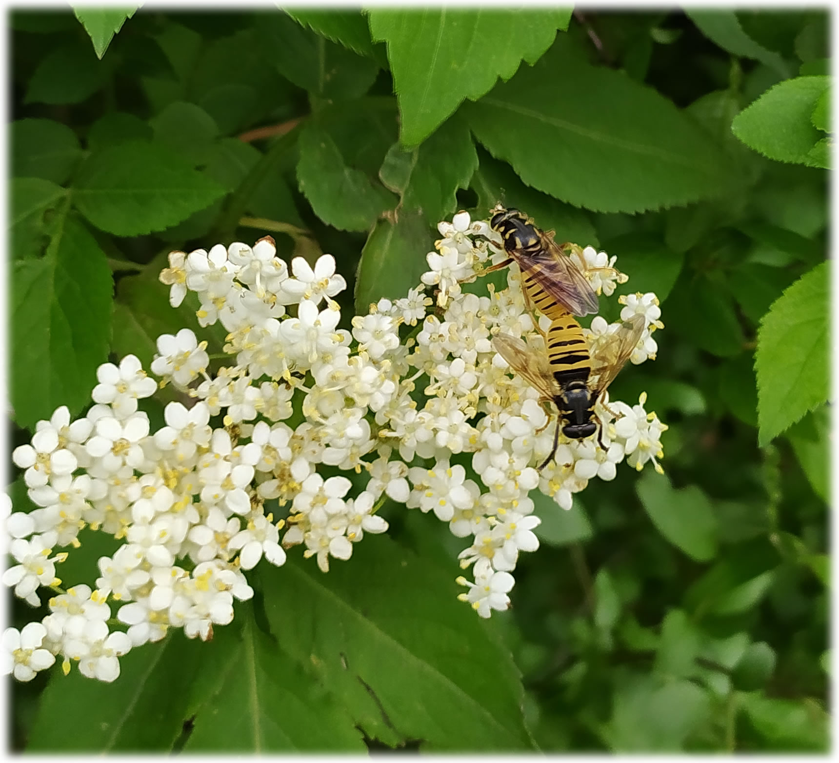 De Druvenkirsche blöht opstunns, dat dat Aart hett. Ehr Duft is so intensiv un stoffig-puderig, dat di dat reinweg den Aten versleit, wenn du ünner so'n Boom steihst. Meist as'n Rookbombe. Keen Wunner, dat de Insekten op den Struuk fleegt; sünnerlich Falter un Flegen sünd dor to sehn, se finnt dor Pollen un ok Nektar. Un in'n Harvst findt de Vagels dor Beeren, mit de se den Boomsamen wieder rümmersleept, För Minschen sünd de Samen avers swack giftig, de schullst also nienich eten. Wedder so'n Struuk, 'neem de Öllern oppassen mööt, dat se ehr Kinner vör wohrschuugt! Ik mutt nu weg, krigg keen Luft mehr vun den dicken Duft. Dat Bild köönt Se per Klick vergröttern! Marlou Lessing |