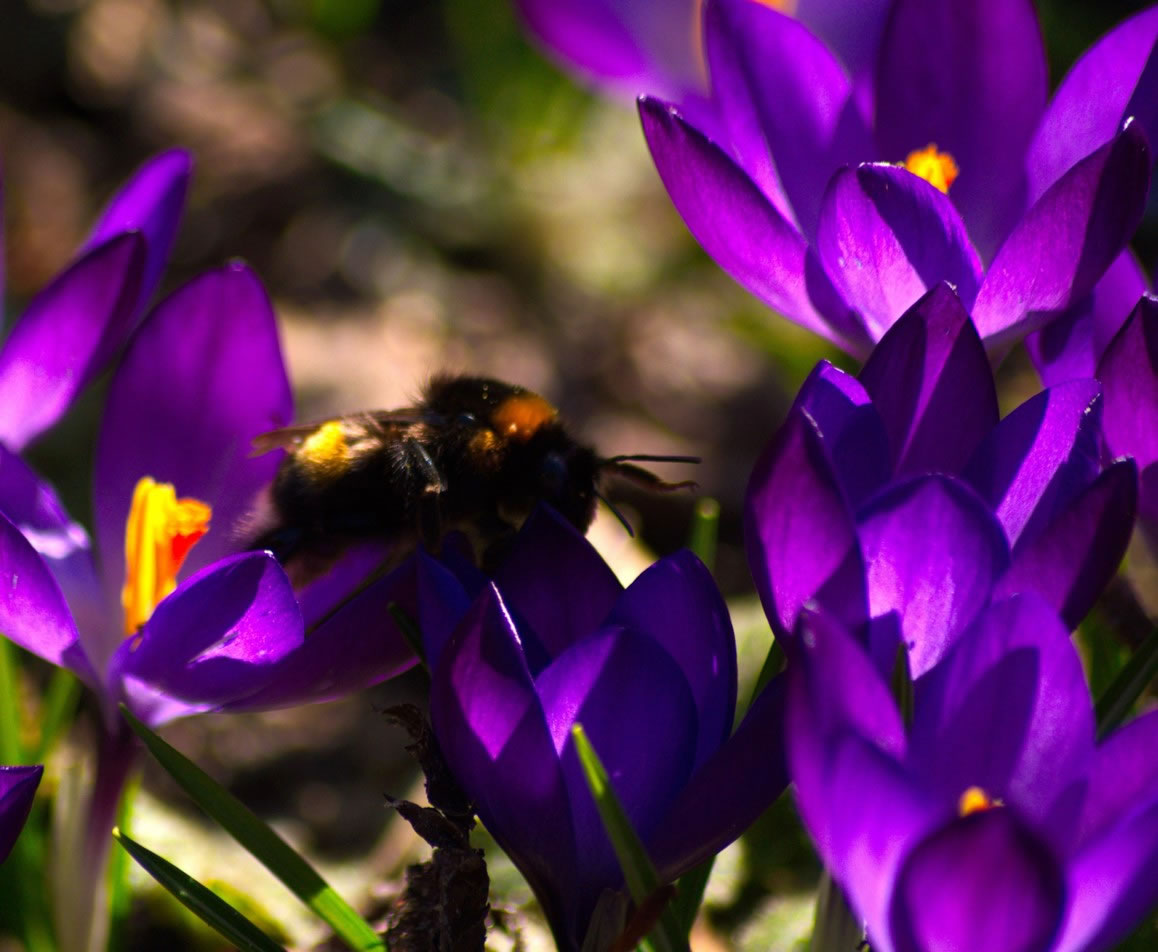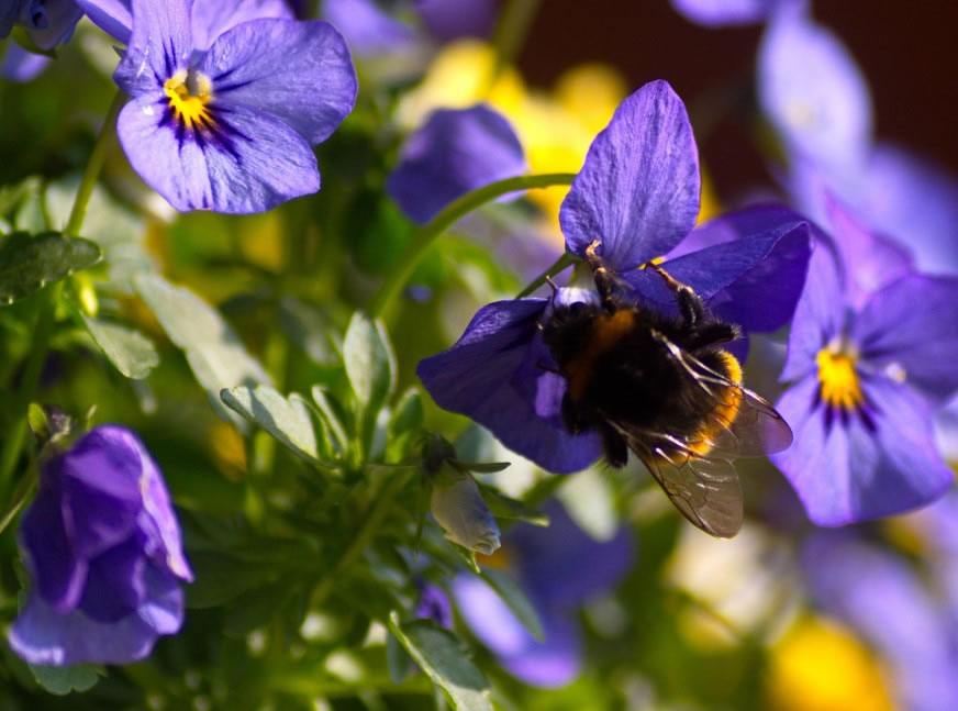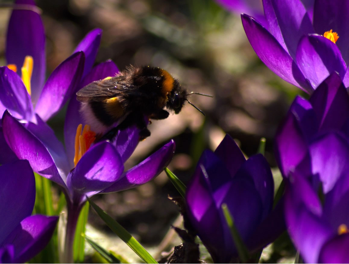 As na so'n langen Winter to verwachten weer, fangt nu miteens allens togliek an to blöhn. Un de Plüschmoorsen fleegt ok al, se köönt ja mit de restliche Köhl beter üm as de Immen. To ehr grote Begeistern blöht op'n Karkhoff ok noch en untiedig Heideaart. Na dor is avers wat los! Kannst söben, acht, negen Hummeln opmaal tellen, un in eensento kaamt welk hento un welk fleegt af. Un wat för Brummers dat sünd!!
