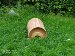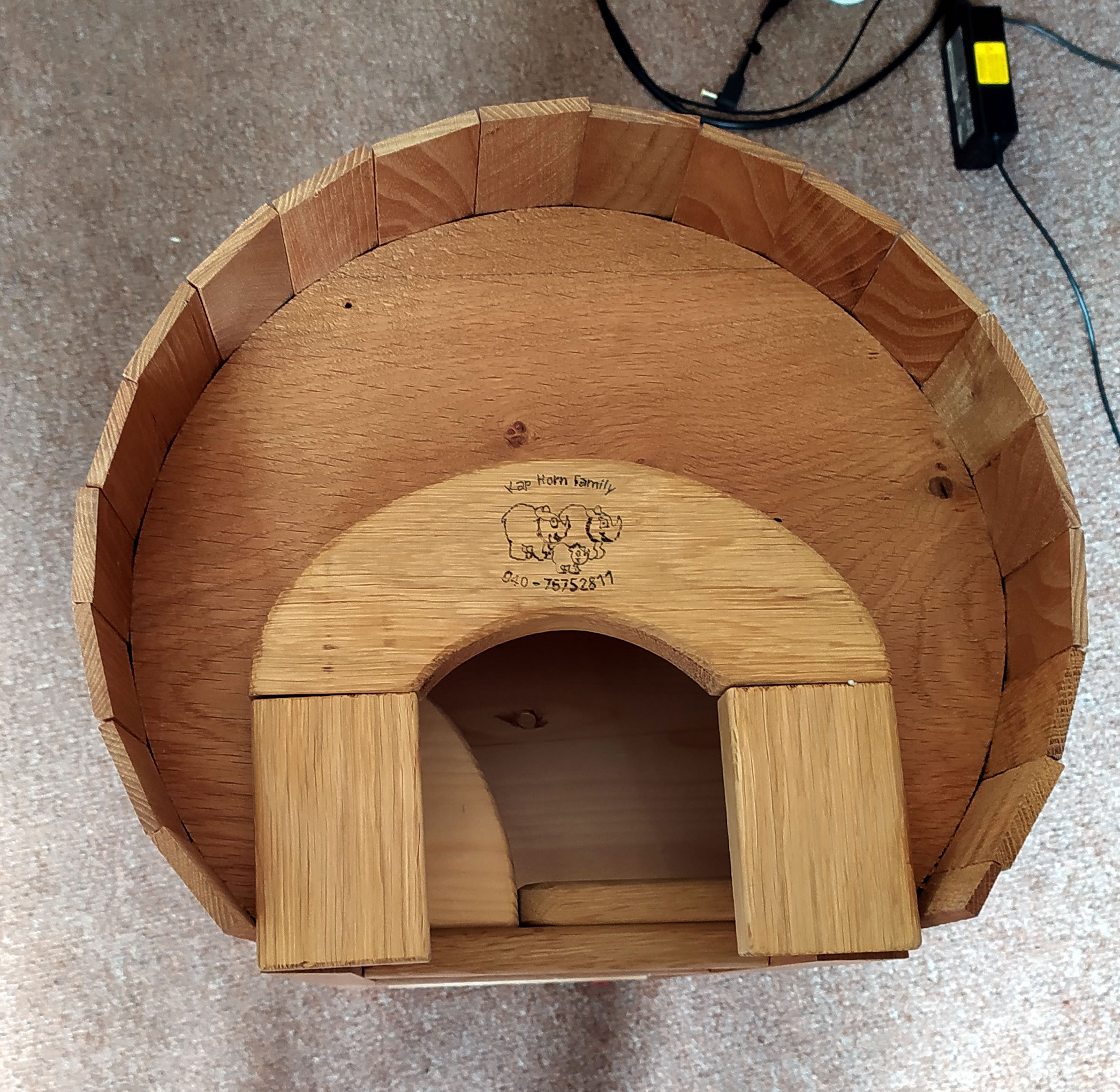 12.9.21 ....Dat Igelhuus Dat weer en Enkeltstück, Handarbeit, mien Schatz hett dat in't Schaufinster sehn un mitnahmen. Dull solide warkt, mit Platz för mehr as een Swienegel, leevtallig opdeelt in en richtigen Grundriss mit dree Ruums. Dat weer doch wat för Ewalds lütten Goorn! Dor wahnt ja en Swienegelfamilie, Öllern un en Handvull Jungswienegels, de Ewald jümmers fodern deit. Un för'n Winter bruukt de ja en Quarteer. Ewald maakt jümmers wat in en Eck mit dröög Loof un en Plane, man hier is ja noch mehr Komfort! Wi also hen na Wilhelmshaven, dat Huus bi Ewald afgeven un in'n Goorn platzeert. Ewald meent ok, avends weern de lütten Swienegel al dor west un harrn dat ünnersöcht. Introcken is natüürlich noch nüms is ja noch nich Winter. Avers se kiekt dat al as ehrn Besitt an. Is ja ehr Reveer dat dor miteens en anner intreckt, mööt se sachs nich beförchten. De Biller köönt Se per Klick