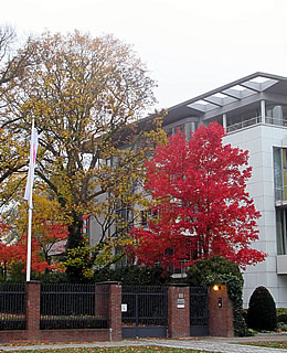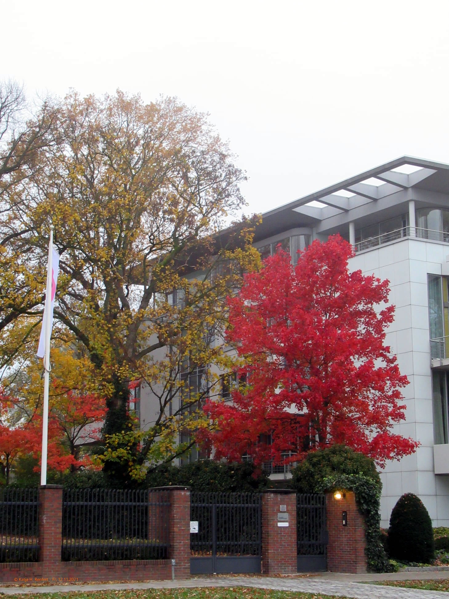 De Halfkrink leet nu blots noch as mit Aquarellstiften maalt. En beten erinnert dat Weder an den April, bloots nich so mild. Ok dat Loof in de Bööm hier wöör to den Lent passen. Aver dat is bloots en Momentopnahm töövst een Momang, denn sühst en Blatt dalfalln un weetst, dat Harvst is. Dat Bild köönt Se per Klick vergröttern! Meike Balzer-Fraun |