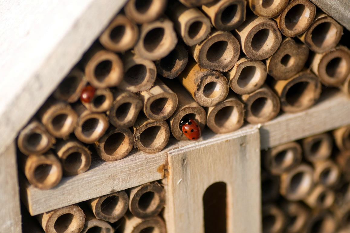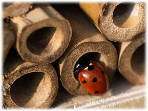 In'n Goorn is allens op eenmal los. De Planten, sogor de Rosen, kriegt Knubben un Bläder, de Immen sünd swoor in de Hornveilchen togang, de Vagels sammelt Nistmateriaal un ok de Marienkävers sünd waak, avers vör de nächtliche Küll söökt se denn doch noch mal Schuul, so as düsse twee Frünnen in mien Insektenhotel.