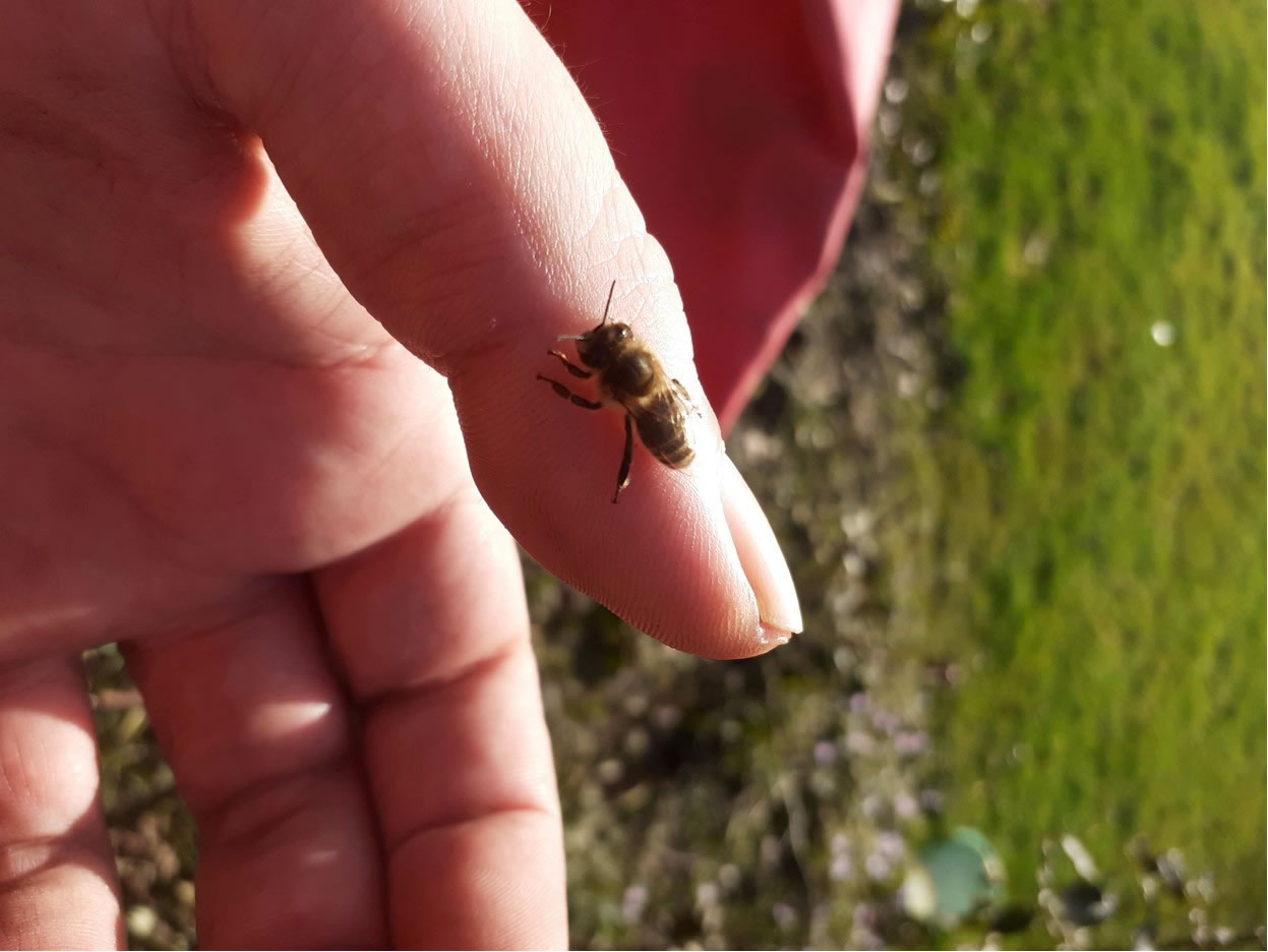 Ja, de Immen sünd los, un för mennigeen weer dat woll en beten fröh, denn dat is doch af un an noch koolt, un de Immen köönt nich ziddern, sik to warmen. Se bruukt de Sünnenwarms un besünners good hett dat een, de sik ok vun nerrn warmen kann, dör de 37° warme Minschenhuut. Düsse Imm hett vulle 20 Minuten op mienen Duum Paus maakt, Warms tankt un dörchatent. Wüllt höpen, se hett ehrn Arbeitsdag sund to Enn bringen kunnt! Dat Bild köönt