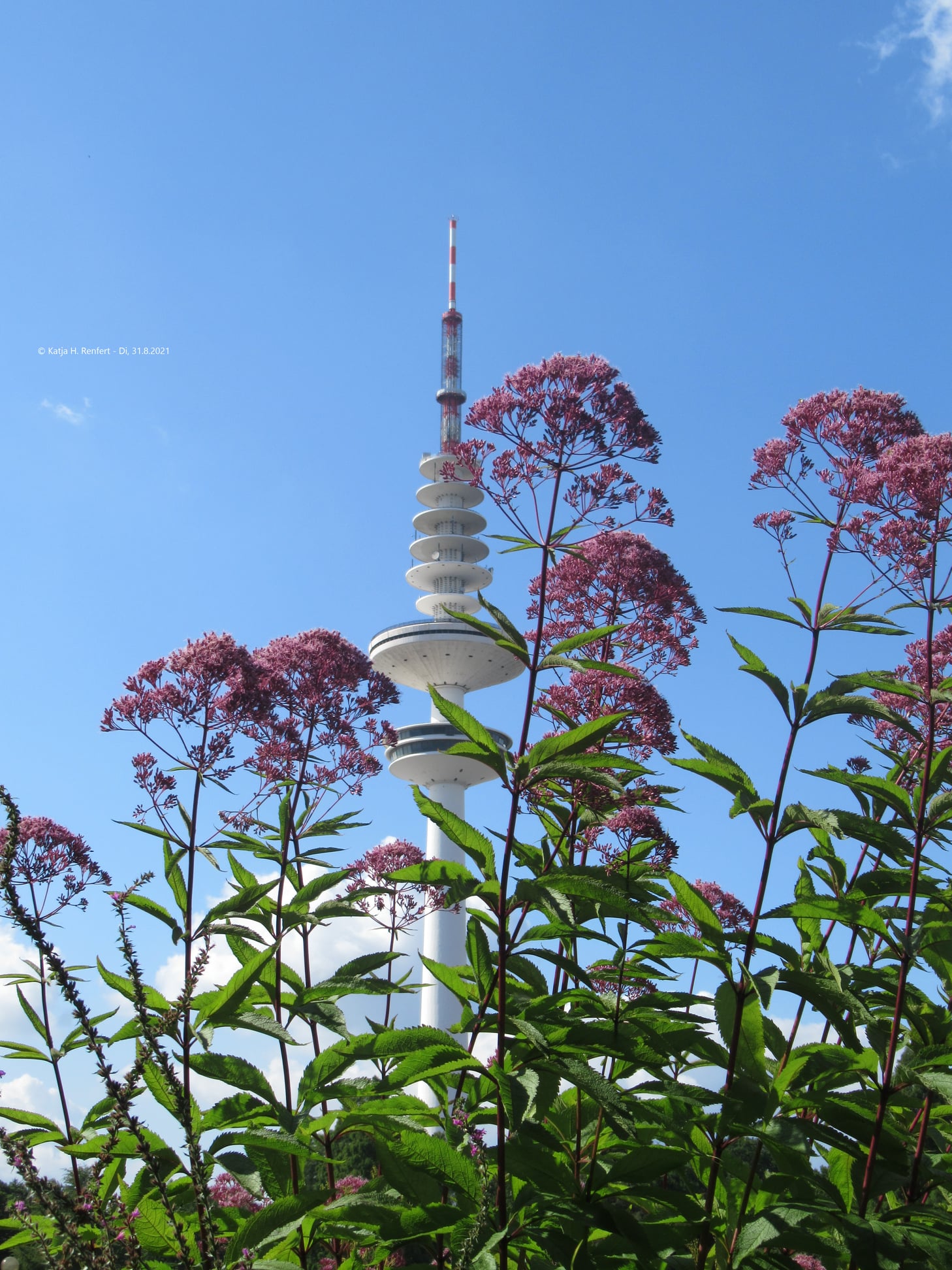 An düsse wunnerschönen laten Sommerdaag wasst in den Hamborger Park "Planten un Blomen" de Grote Wasserdost mit den Fernsehtoorn üm de Wett. Noch süht dat ut, as wenn de Fernsehtoorn licht vörn liggt, aver de Wasserdost hett een Vördeel: he wasst noch wieder, de Toorn nich! Dat Bild köönt