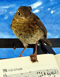 Twüschen de kahlen Telgen sitt en Singdroßel. Ehr Bost is sprenkelt as oles Pergament; ehr Sang is en Speel ut Wedderhalen un Variaschoon, as wöör he sik in den Morgen rinflechten. Twüschen de Strophen tuckt se an en Beer, man de is to hart un fallt dal. De Droßel kehrt sik dor gor nich an un singt wieder. Dat Licht warrt heller, de Dag fangt an. De Vagel grööt den Lent, de liesen kümmt. Dat Bild köönt Se per Klick vergröttern! Jasmin Apcin