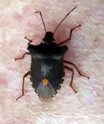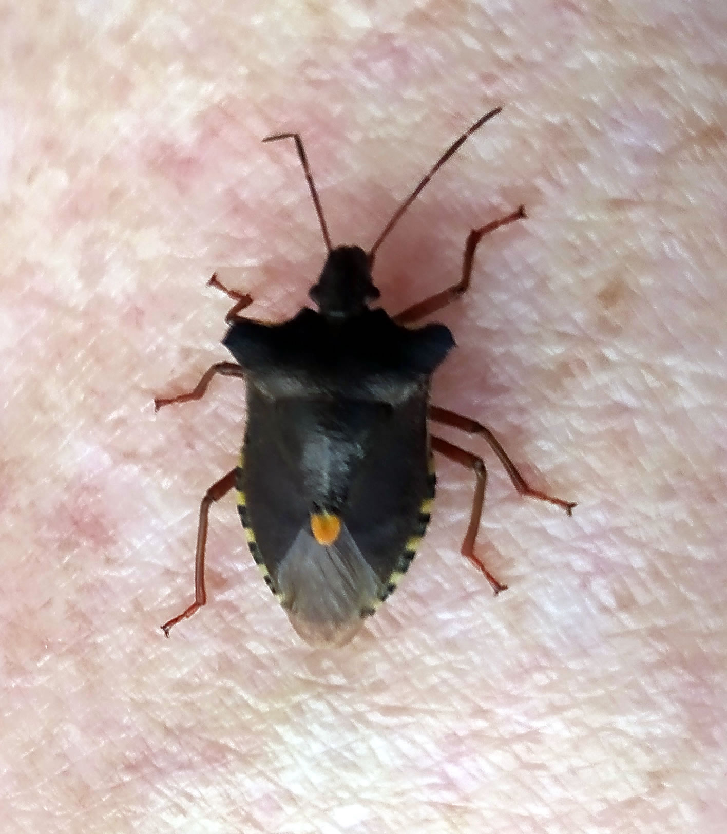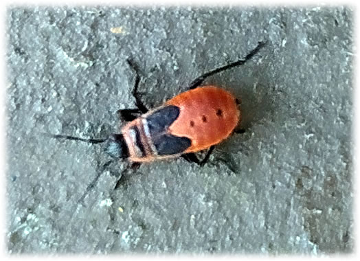 Dör mien apen Baadstuvenfinster is se rinseilt de roodbeente Boomwanz, een vun uns gröttste Wanzenaarten, sachs op de Söök na Fuchtigkeit. Landt is se denn ganz richtig in mien Baadwann, 'neem noch Waterdrüppen hüngen. Ik heff ehr behott wedder na buten in't Gröne verfracht. De smucke Wanz mit den orangen Fleck, de roden Been un den lustigen Punktrand driggt en dunkel Bruun dat is ehr Harvstkleed, lees ik na; in'n Sommer is se heller. Oha! Warrt Harvst, Lü! De lütte Wanz weet dat al vör uns. Dat Bild köönt Se per Klick