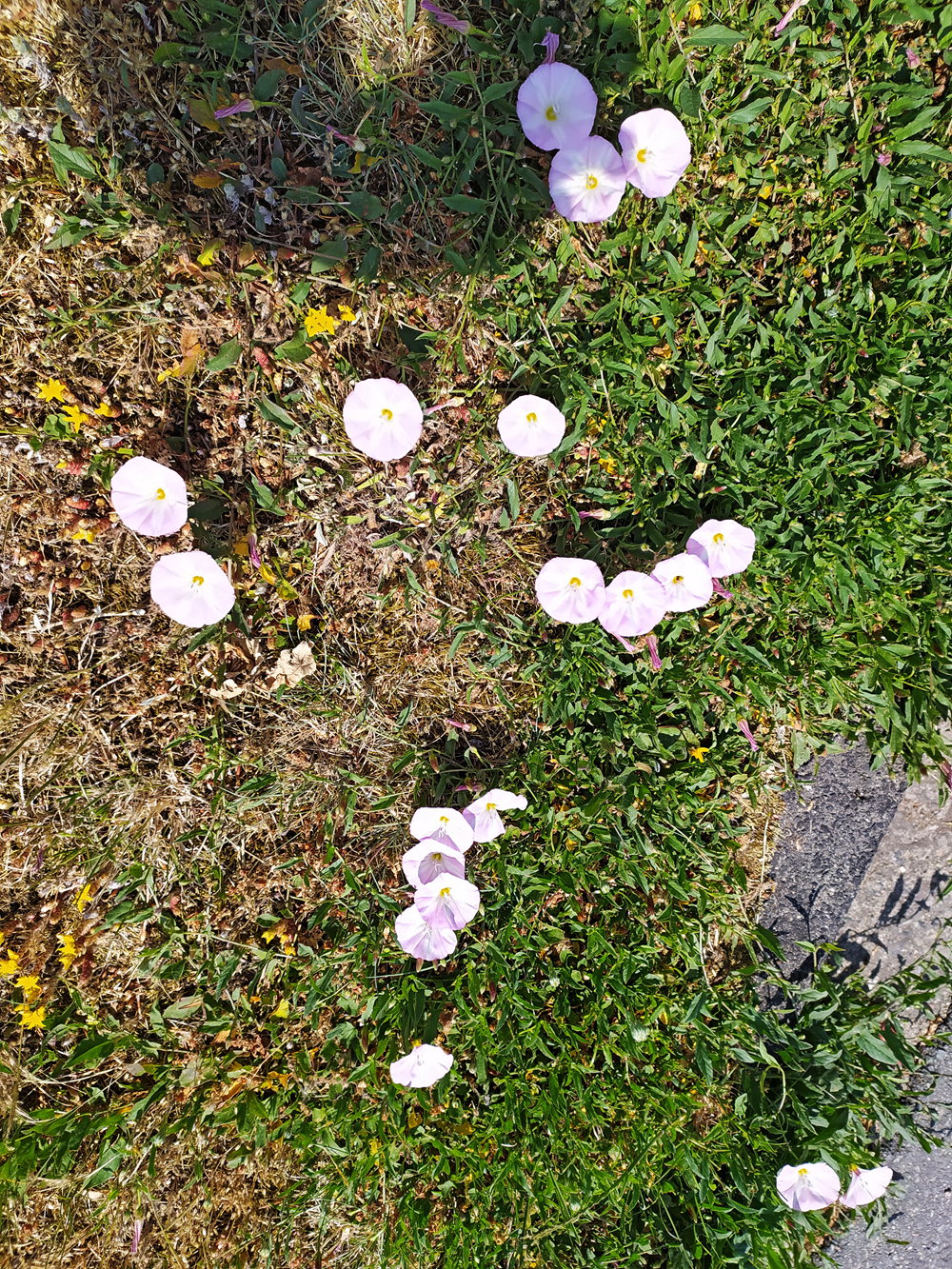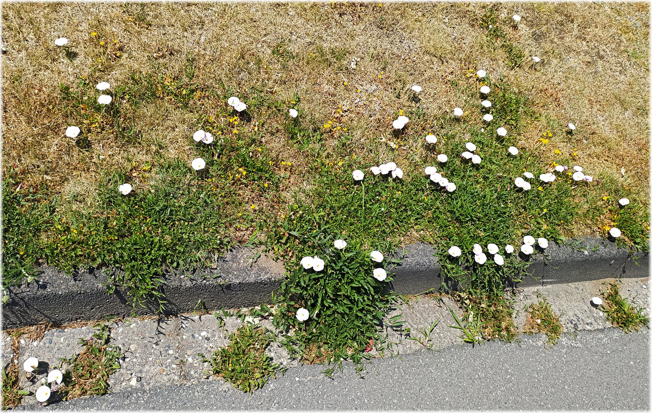Na sien Blatt is dat en Ranunculus parviflora, de "lüttblödige Hahnenfoot", avers na sien Blööt ehrder Ranunculus repens, de "krupen Hahnenfoot". Kann een dat opklaarn? Op wat gaht wi dor spazeern? De Biller köönt