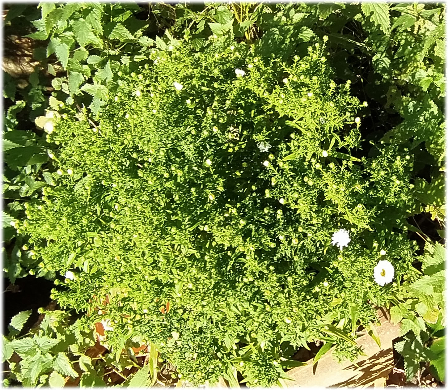 dat en sünnerlich effiziente Photosynthese De annern twee sünd wunnerschön witt blöhen Büsch, de ik avers nich mit ehr Naams kennen do. Ik wies se hier mal, villicht kennt een vun Se de Planten? De een maakt lustige spitze Toppen as Zippelmützen (hier links), de anner lütte buschige witte Blöden.