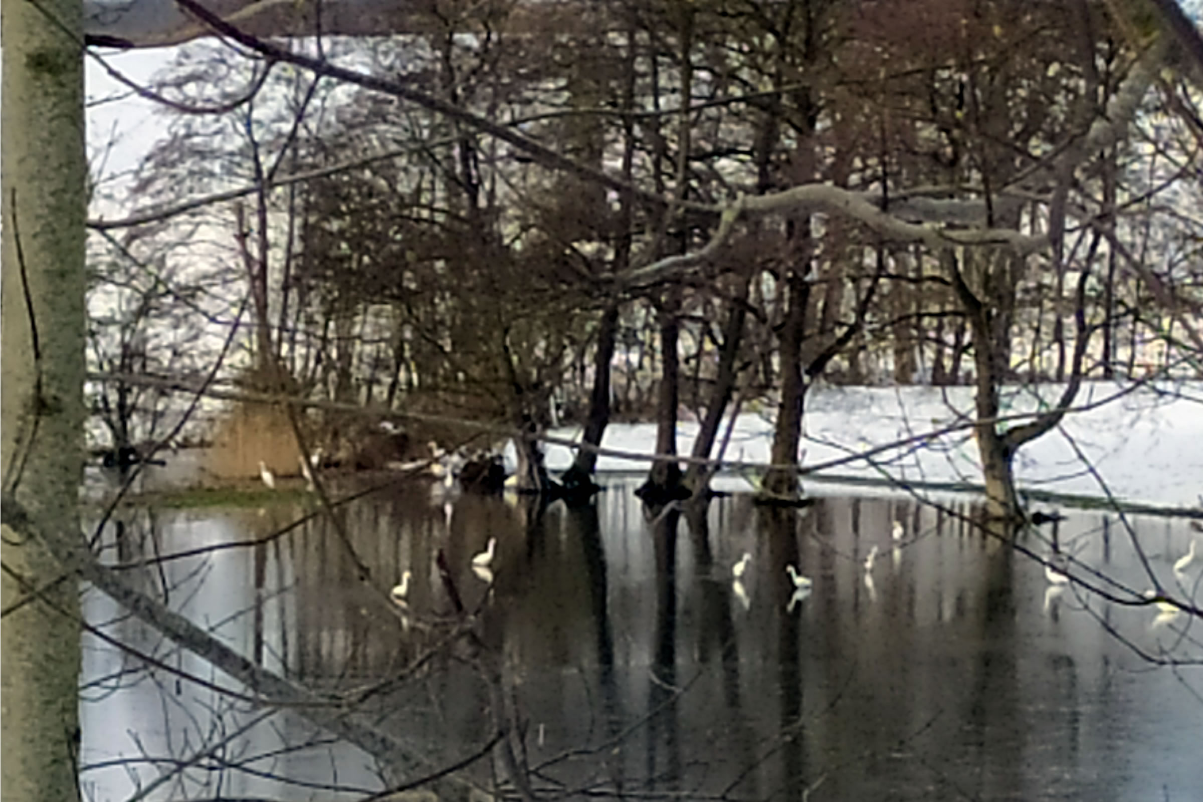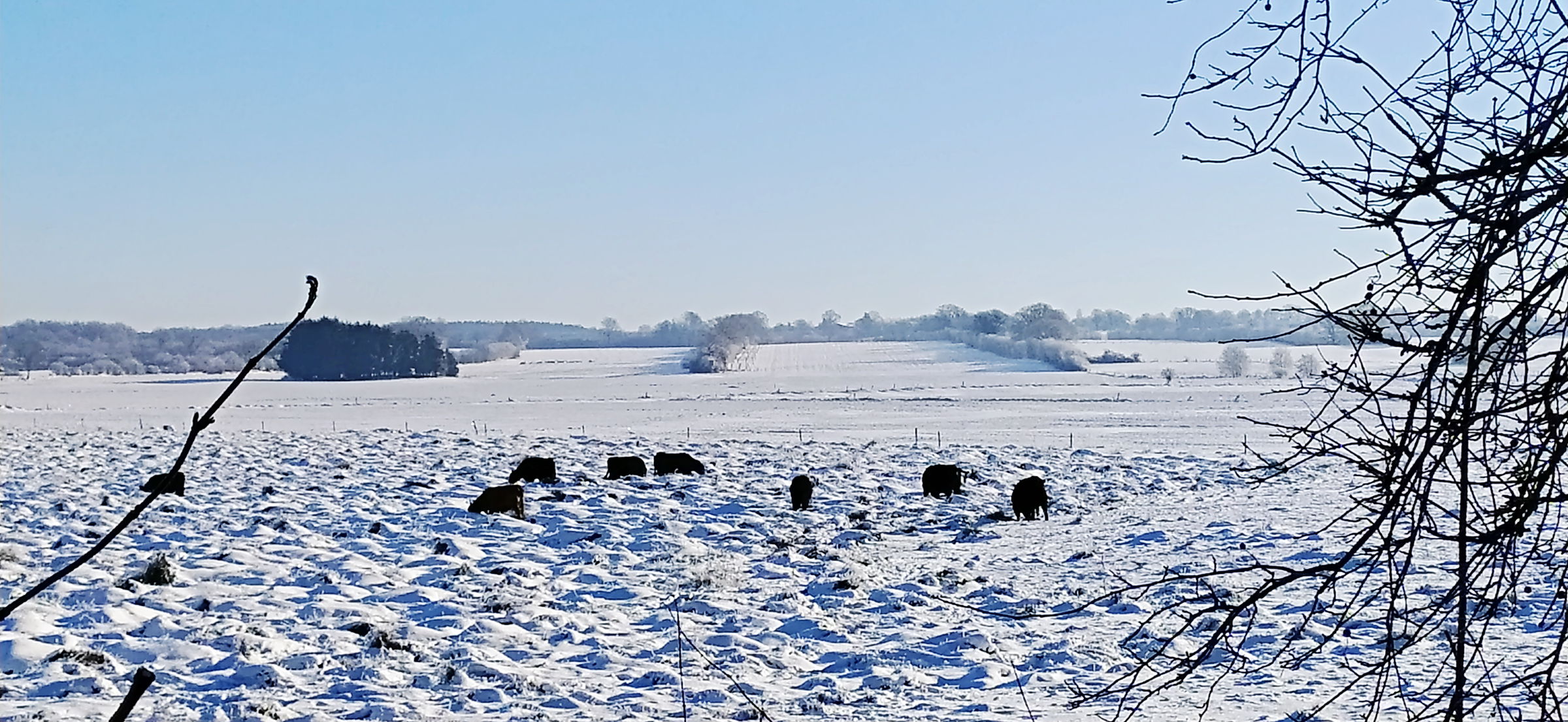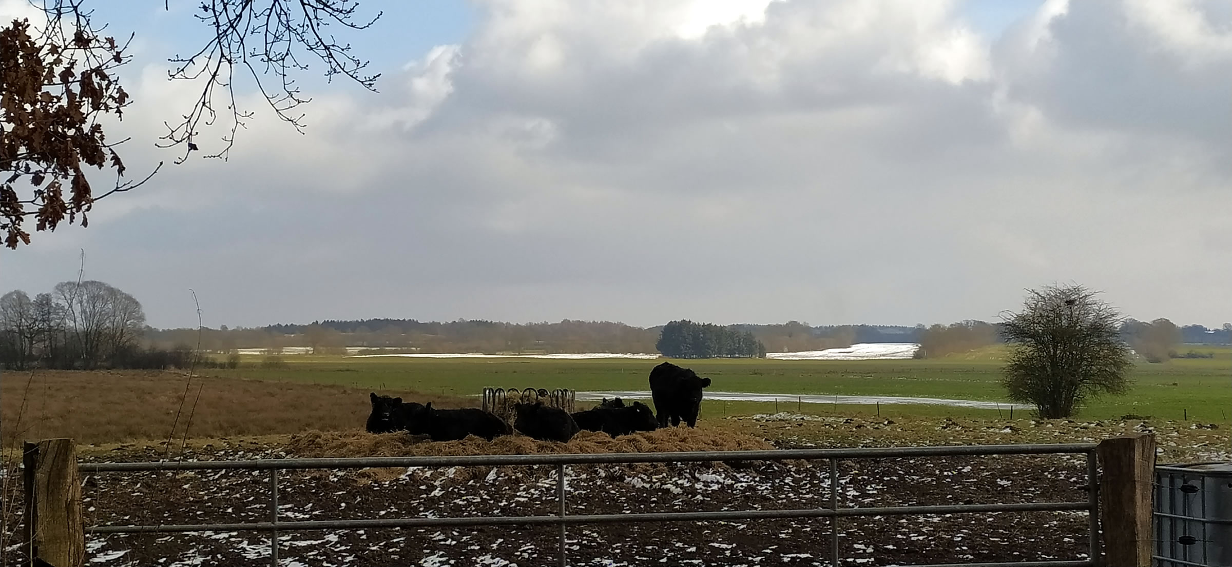 Nu daut dat endlich, un de swatten Rinder köönt endlich wedder den Borrn sehn! Teihn Daag hebbt se gedüllig in'n Snee wöhlt, ok wenn de Buur jüm wat hensmeten harr un de Snee dat glieks wedder todeckt hett. Ok de Waterbottich weer tofraren; dat Veh hett even Snee freten. De Natuur hett düsse Deerten so utstaffeert, dat jüm dat nix utmaakt. Längere Winter sünd fröher veel vörkamen, un wokeen denn op fleten Water anwiest weer, is eenfach utstorven. — Man liekers warrt se froh ween, wenn se bald wedder fleten Water drinken köönt! Dat Bild köönt Se per Klick vergröttern! Marlou Lessing |