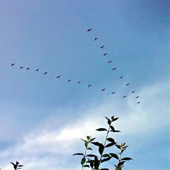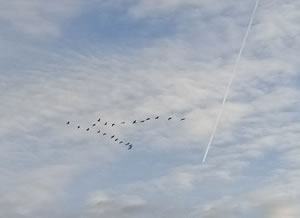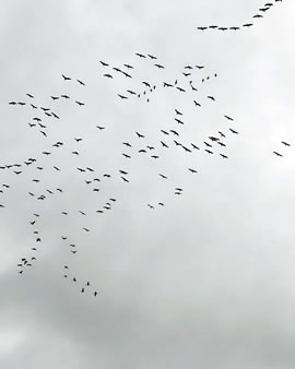 2.11.25 ...Se fallt vun'n Himmel Al jümmers hebbt de Toogvagels mien deep Bewunnern hatt. Düsse enorme Moot vun de lütten Deerten, düsse coole Kehrdiannix, düt entslaten Weltbörgerdom! Nu grasseert de Vagelgripp, un wi höört: De Kranen fallt dood vun'n Himmel.