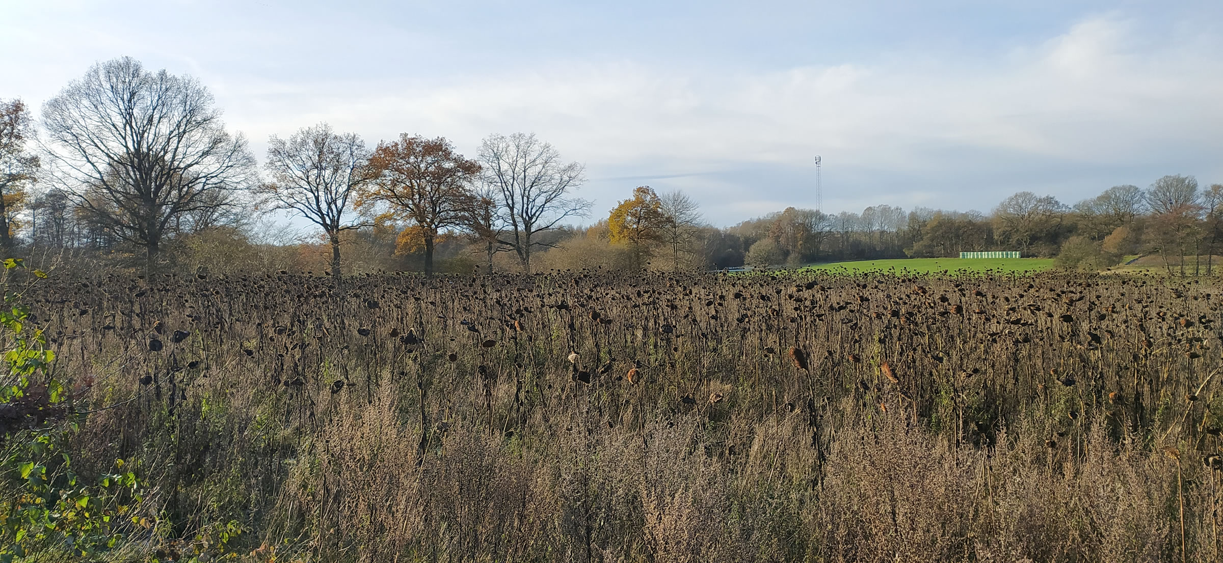 De afblöhten, avers nich afaarnten Sünnenblomenfeller in uns Land sünd in düsse kolen Daag en levensretten Ressource för de Vagels. Jümmers, wenn ik an so'n Feld rantreden will, flücht en Swarm lüttje Vagels dorut op. Wenn dat Lünken sünd, erkenn ik se ja noch, avers ik heff ok al en anner Aart sehn, mehr so vun Wieden, nich veel grötter as Lünken, avers mit helle Flünkenünnersieden. Weet een, wat dat för welk sünd? Dat Bild köönt Se per Klick vergröttern! Marlou Lessing |