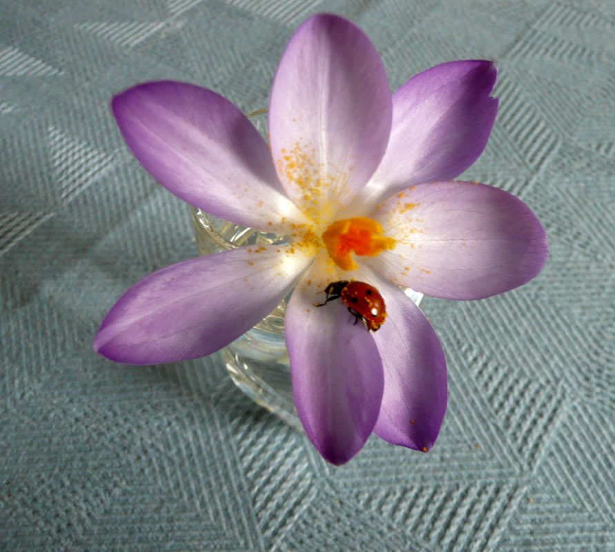 dat Geel vun de eersten Binnen an mien Fensterschiev seet sogoor al en zarte Florfleeg. Se