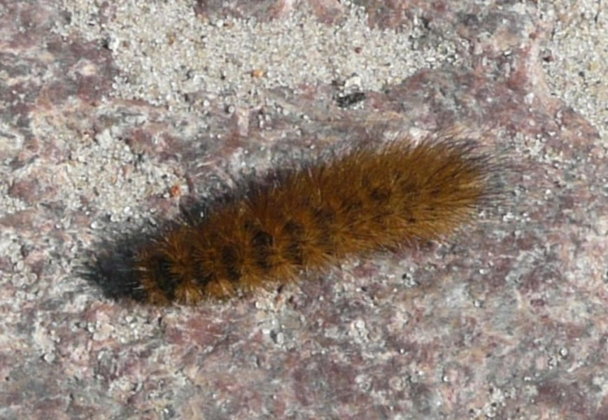 Mit en lütten Knüppel hebbt wi se an de Kant daan. Bi den Transport möök se sik ganz krumm. Aver bald krööp se wedder wieder. Dat dichte Hoorkleed weer smuck antokieken. Sehg meist en Pelz liek. Wat dor wull mal för en Bottervagel ut warrt? To Huus hebbt wi glieks nakeken. Dor hebbt wi rutfunnen, dat he to de Bärenspinner höört. Sien Naam is "Brauner Bär". En ganz smucken Bottervagel warrt mal ut de bruun Boor. Wat en Glück, dat wi se up de Siet sett hebbt! De Biller köönt Se per Klick