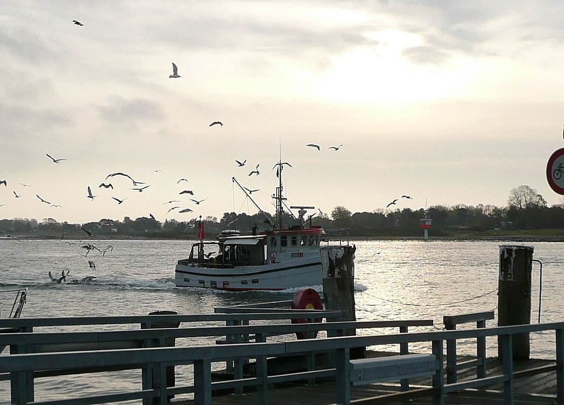 Bi Sünnenupgang keem en Fischkutter vun See. Dat Krieschen un Larmen vun de Möven möök em al vun wieden künnig. He böög vör Tramünn üm de Mool un föhr in Richtung Fischereehaven. Seker harr de Kutter enen goden un rieken Fang maakt. Dat weer Döschtiet! Al up de Trüchfohrt wöörn de Fisch sorteert un sauber maakt un de Bifang un Resten över Bord smeten. Dat weer en lekker Freten för de Möven. Se flögen in dichten Swarm achter den Kutter ran un töövten up niege Fischresten. In de Hööcht vun de "Passat" dat histoorsche Segelschipp bi uns in Tramünn smeten de Fischer wedder wat över Bord. Alltohhop un to glieke Tiet störk de Mövenswarm hindaal un möök sik doröver her. Ünner luthals Krieschen geev dat Striet üm de dicksten Brocken. Dat Water sprütt richtig hoch. Dorna stööv de Swarm uteenanner un dat güng wieder den Kutter achterna. För mi heet dat: "Föhr man gau na den Fischereehaven un kööp Fisch in. Hüüt kriggst du seker enen goden Dösch!" So'n frischen Dösch weer för uns en Festeten. Ok an Hilligavend keem bi uns ümmer Dösch up den Disch. Karpen weer uns to düer. De Dösch weer billiger un ok nich so fett. Wi kunnen em eenfach beter verdregen un he smeck uns ok beter. Dorbi kost hüdigendaags de Dösch an Fischereehaven dat kg bi 5 Euro un de Karpen dat kg 6 Euro. De Snack: "De Dösch is de Karpen vun den lütten Mann!" gellt dorüm egentlich al lang nich mehr. De Biller köönt Se per Klick
