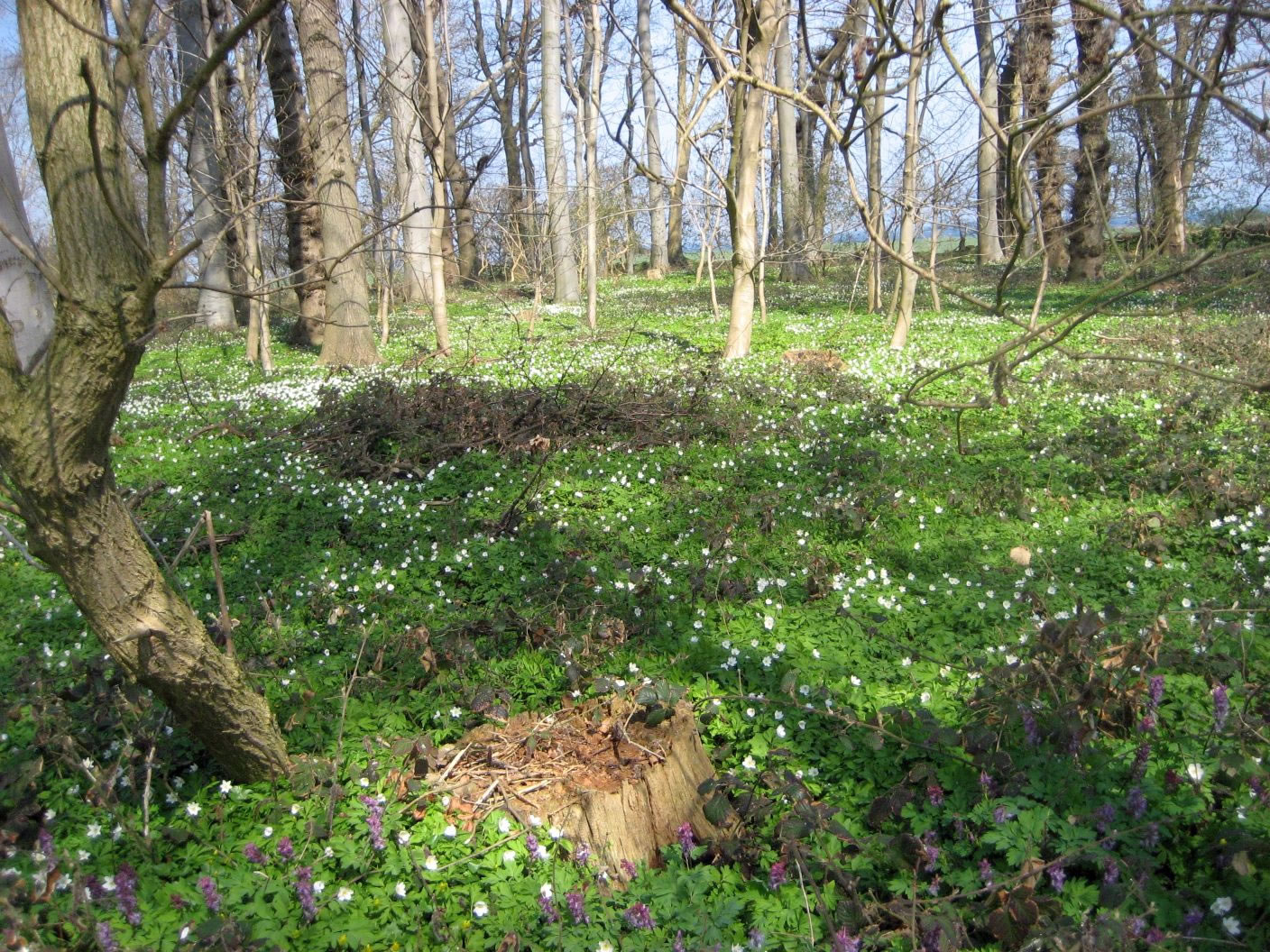 Unsen Weg güng dörch den Klosterwohld vun Cismar. Överall lüchen in hellen Sünnenschien al de witten Buschwindröschen. Över den Wohldbodden weer en witten Teppich utbreedt.