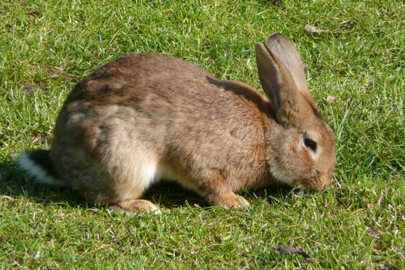 Villicht harrn wi hüüt ok noch Glück un drepen den Oosterhaas. Wi spazeern wieder en Knickweg lang. Un wohrhaftig, dor hoppel in en Buurngoorn en Oosterhaas. Mien Mann stupps mi an un meen: "Nu krieg di man wedder in, dat is ja blots en Stallhaas!"