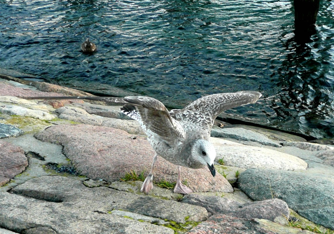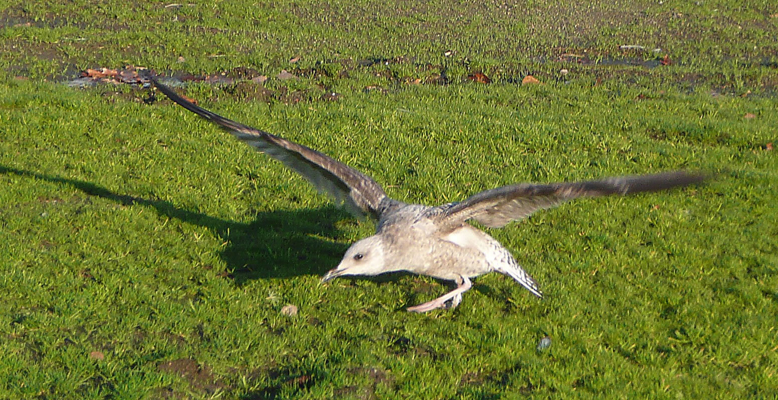 Up dat hele Been hu Neegsten Dag weer ik wedder an't Över. Weer doch to neeschierig, up de Mööv mit dat kaputte Been wedder dor weer. Dittmal stünn se up den Rasen un streck dat kaputte Been vun sik. As ik neeger ran keem, flöög se wedder up. Wo se sik dat wull haalt harr?
