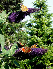Bi mien Naver steiht en düsterlila Buddleia in de Heck. Dat is en Zierbusch, ene Oort Sommerfleder. De Buddleia is 1890 ut China bi uns inföhrt woorn. Mit de verscheden Farven un de slanke un lichte Oort is he in Sommer en Smuckstück in uns Goorns. De Telgen mit de Blöden hangt in en'n Bagen na ünnen. He blöht vun Juli bit September. Wi kennt em ok ünner den Naam "Schmetterlingsboom": he lockt al de verscheden Bottervagels an. Un düsse Sommer is bi uns en Bottervageljohr. So veel Bottervagels heff ik in unsen Goorn noch nie andrapen. Dat is richtig schöön. Villicht hett de Bottervagelboom uns dorbi holpen. He hett den Naam to Recht kregen. Güstern heff ik tominnst dörtig bit veertig Bottervagels tellt, de in de Moornsünn üm em rümgaukeln. Dor weer mitünner kuum noch en frien Placken up de Blöden för de verscheden Bottervagels to finnen. Distelfalter un Pfauenauge rangeln üm en goden Placken an de Sünn. Ok de Immen weern mit vun de Partie. De Weißlinge kregen meisttiets keen Been an Deck un lannen blots up en Blatt vun den Sommerfleder. In'n Harvst plant ik mi ok so enen Boddervagelboom in de Heck. Dat heff ik beslaten. Denn mutt ik nich ümmer na den Naver röver. De Biller köönt
