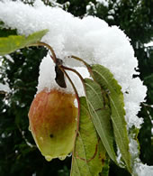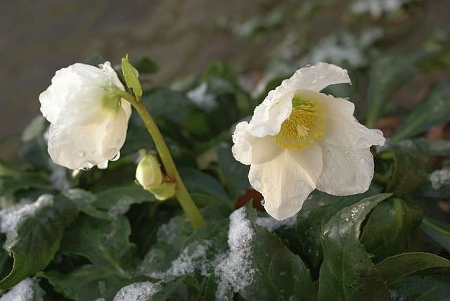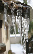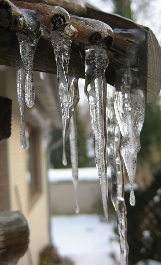 Buten is Ies un Snee, dicke Iestappen hangt vun 't Dack, süht