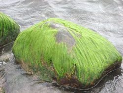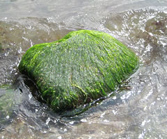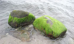 Meist sehg dat ut, as harr en Künstler siene "Werke" in 't Water vun de Ostsee stellt. Hier mal en Steen, dor mal en Steen un all weern övertrocken vun en wunnerfien Gröön. Ik kladder also rünner an 'n Strand un leep dörch den Sand bet an de Waterkant. Dat Gröne weer en Plant. Natüürlich dach ik eerst an Seegras man nee, Seegras weer dat doch wohl nich.