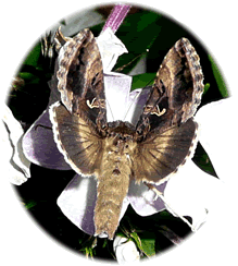 Meern in de Sünn seet se dor an Navers Goorntuun. Wo kunnt blots angahn. Nu gaukel de Gammauul wieder na mien Goorn. Se flatter üm mienen Phlox. De Gammauul müss wull düchtig Hunger hebben. Sünst weer se doch in de Hauptsaak in de Schummertiet un in de Nacht ünnerwegens. Up düsse Oort kreeg ik Gelegenheit, en Gammauul to knipsen. Liekers weer dat gor nich licht för mi. As so'n Kolibri flatter se in de Luft un sweev vör en Blööt. Üm den Nektar to halen, höllt se sik mit de Vörderbeen ganz koort an en Blödenblatt fast. Se sett sik kuum mal daal.