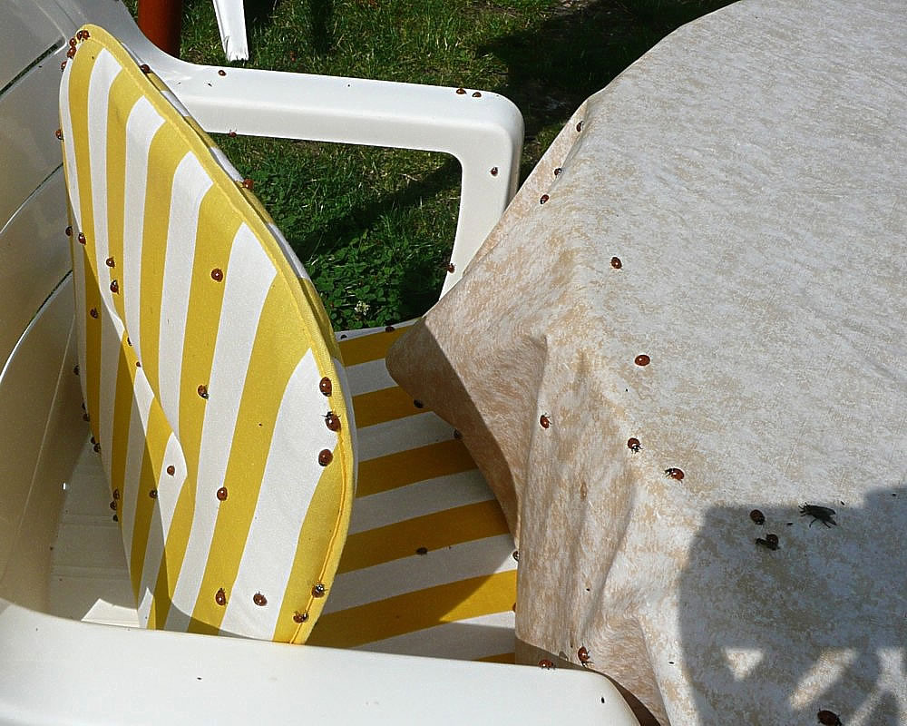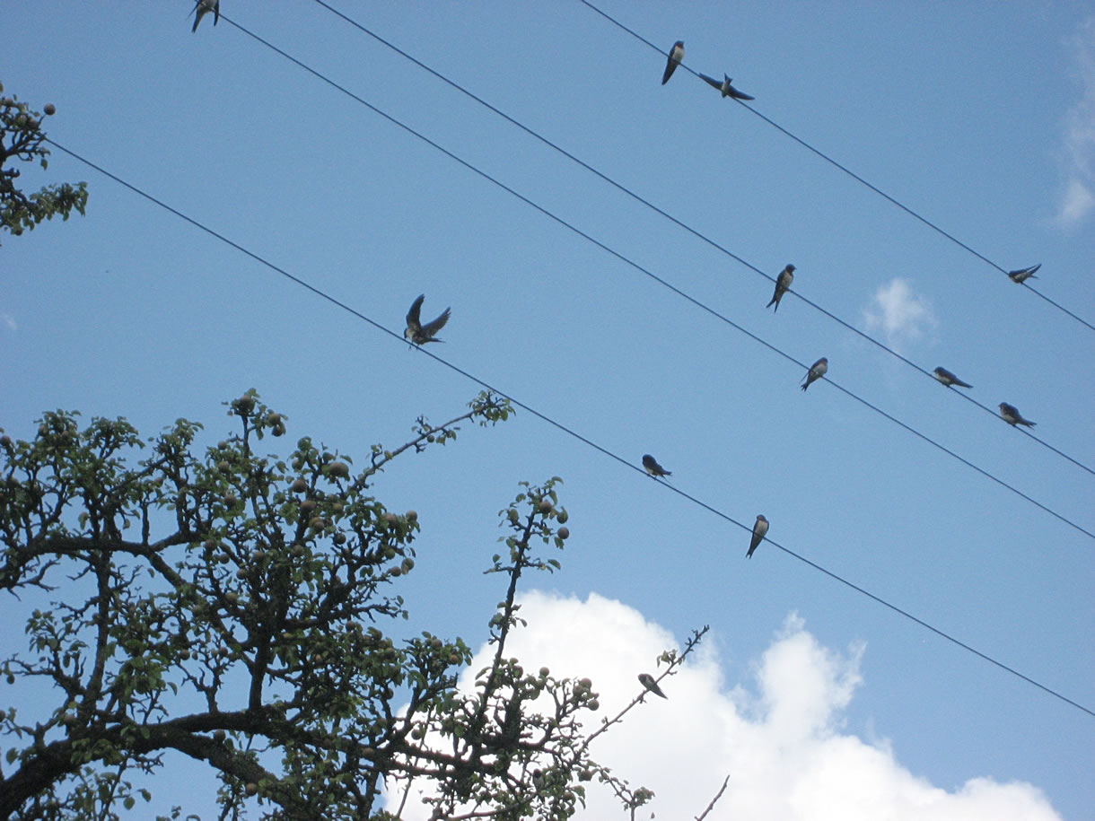 Klock twölf wies mien Thermometer an't Kökenfinster up de Nordsiet al 30° Warms an. Un dat an 26. Mai! In't Radio harrn se en Unwedder vörrut seggt. Mit den warmen Wind kemen Bottervagels in mien Goorn. So veel up eenmal un an enen Dag weer ik noch nie wies worrn.