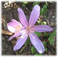 uns in 't Fröhjohr nich. Man nu, hüüt morgen in unsen Goorn toeerst denk ik noch an Krokus man denn fallt mi in, dor blöht ja uns Herbstzeitlose. Zort lila. Un in'n Gegendeel to den Krokus, de dree Blödenstoff-Fadens hett, seh ik bi de Herbstzeitlose söß.