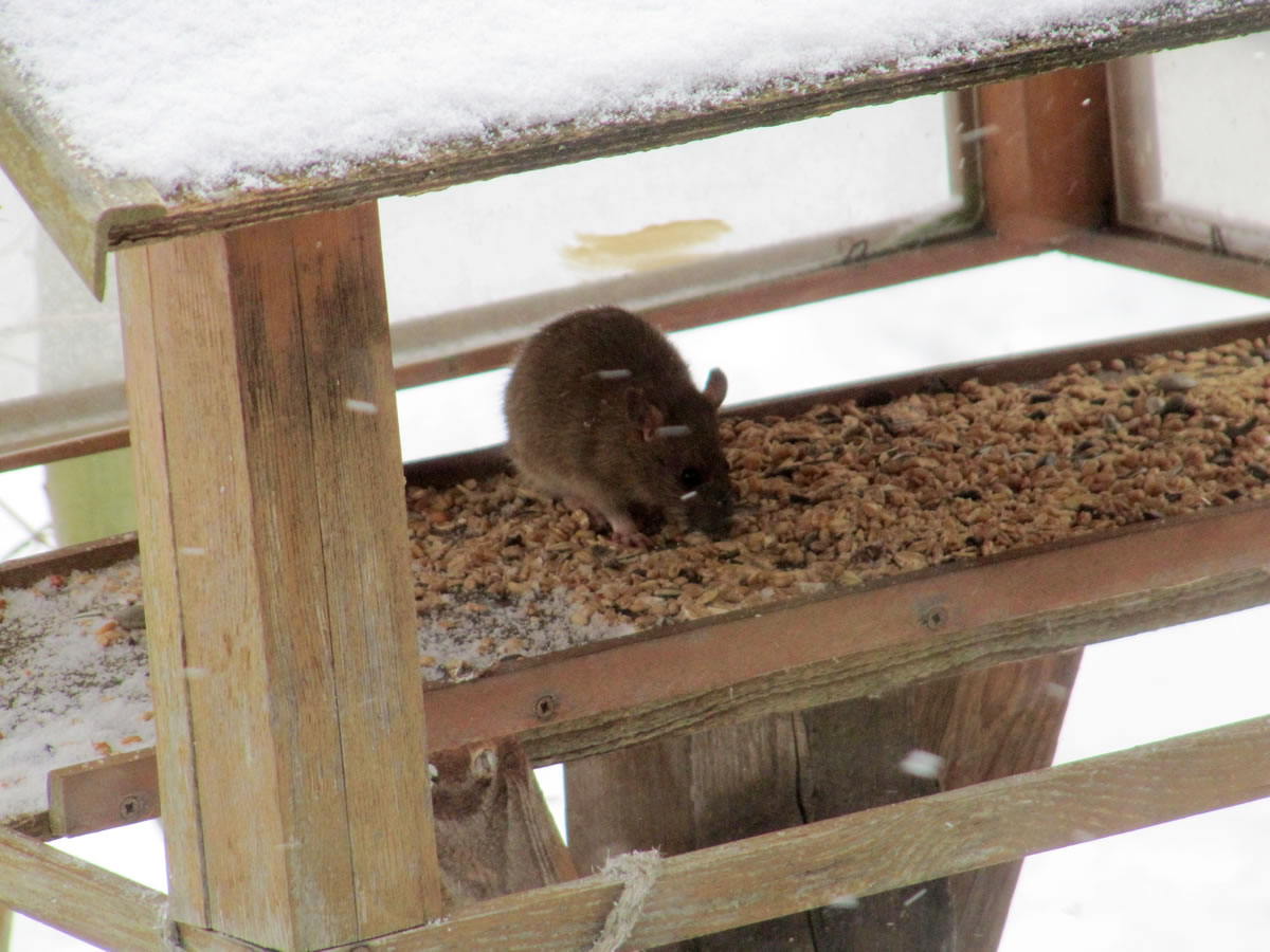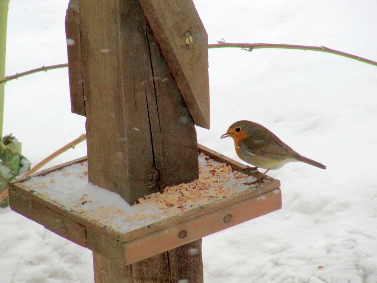 Tja, so is dat bi uns buten vör dat Finster. Rootkehl un Dompfaff un Häger kaamt jümmers noch un de Rotten sünd ok noch dor. De Biller köönt Se per Klick