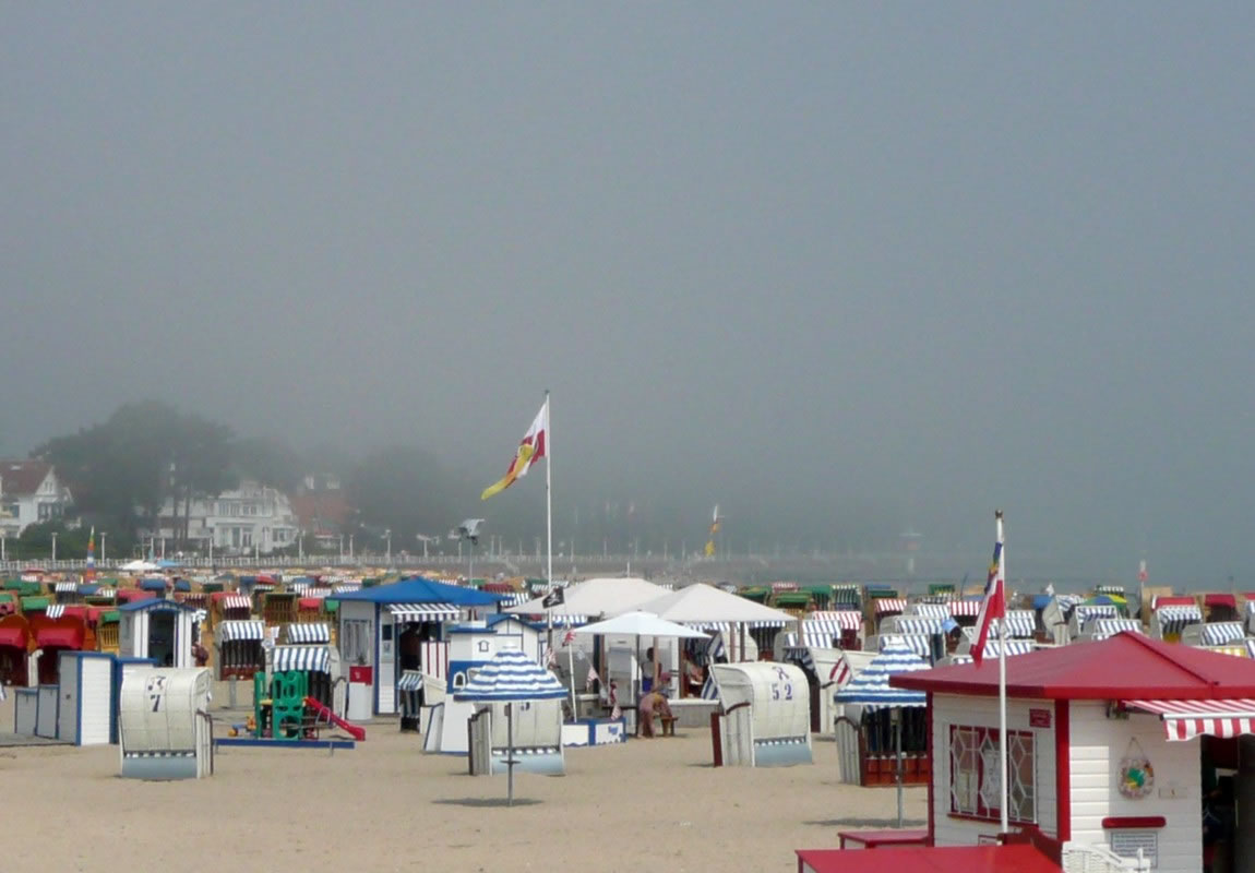 dükern Un dorbi harr de Wederkieker för den 1.Juli so richtig godes Sommerweder vörher seggt. De Minschen strömen ut Stadt un Land an den Strand. All söchen de frische Seeluft. Mit Nevel harrn se aver nich reken. As mi en mit den Knipskassen sehg, meen he: Gegen Meddag weer denn de ganze Spöök an't Water vörbi. De Oostwind harr toleggt un de letzten Nevelswaden wegpust. De Lüüd seten in de Strandkörv un leten sik vun de Sünn beschienen. Welk weern sogoor in't Water gahn. De Biller köönt