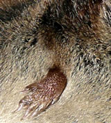 un Greta weer em wies woorn. Se harr em dor up Ik heff em denn up en Schüffel mit up de Terrass nahmen. Heff em up den Lünkendisch afleggt un mi genau ankeken. Wat harr he för en smuck week Fell! As Kind harr ik mal enen Mantelkragen ut Mullworpsfell. De weer so week. Dor heff ik ümmer mien Nees rinsteken un an dat weke Fell reven.