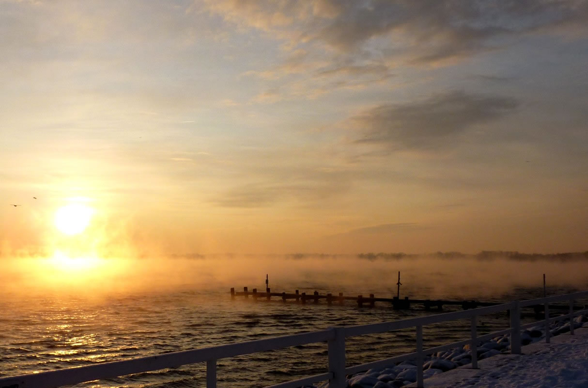 in de Mööt. De Oostwind dreev se över de Promenaad