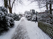 10.1.10 . .Strenge Winterdaag! Dat sniet un sniet un will gor nich uphöörn. De Eer is al mit en dicke Sneeschicht todeckt. Ok up de Telgen vun de Bööm un up de Hecken liggt dichten Snee. De ganze Natuur is witt. Smuck süht dat ut, en richtig Wintermärken.