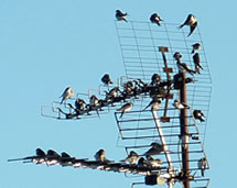 An en Septembermoorn harrn sik up de Antenn vun mien Naver gegenöver en ganzen Barg Swulken daallaten. Se seten in de warme Moornsünn un putzen ehr Fedderkleed. Mal flögen ok welk up un kreisen üm de Antenn. Sehg meist ut, as wull'n se noch 'n beten dat Flegen öven, bevör se up de grote Reis na'n Süden güngen.