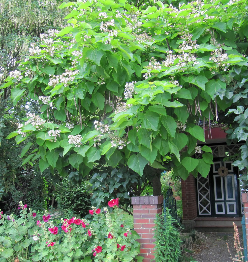 As wi kortens mal dörch den Park vun dat Prinzenpalais in Plön bummeln, dor stünn ik ok miteens vör enen Catalpaboom, un denn freu ik mi. Un in Bosau in enen Vörgoorn heff ik ok enen sehn.