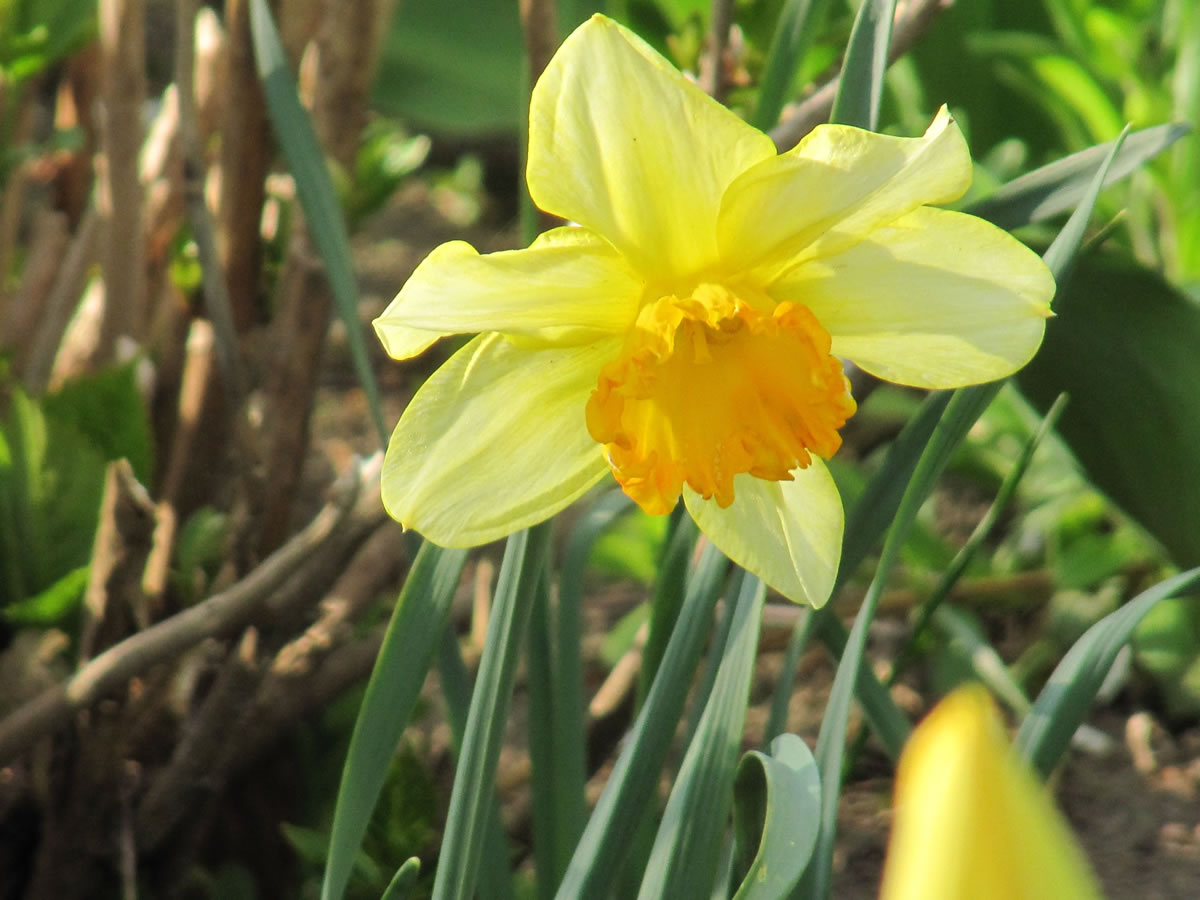 Wat he dor mit Frostschaden trüchlaten hett, is richtig trurig. Vele lütte Planten bleven up de Streck, se kunnen sik nich verhalen. Se legen platt up de Eer. Ok de erste warme Sünnenschien kunn ehr nich mehr helpen. Wüllt blots höpen, dat de Winter nich noch mal wedder trüch kümmt. Poor Daag later keken aver doch wedder eenige vun de velen ümknickten Blöden in de Hööcht. Mit so veel Kuraasch vun de Planten hett sülvst de Winter nich reekt. De Biller köönt Se per Klick