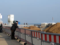 4.3.12 . .Schaap up de Priwallfähr För den 26. Februar Klock 9 weern ca. veerhunnert Schaap anseggt. De sullen mit de Fähr vun den Priwall na Tramünn översett warrn. Ehr Tohuus weer de Landschaftspflegeverein Dummersdörper Över. In de Wintermaanden weern se up de Wischen in't Meckelnborger Land. Nu keem aver de Lammtiet un dor müssen se in ehr'n Stall in Dummersdörp. Dat weer för de Lüüd in Tramünn en groot Beleevnis. Sülvst to de fröhe Stunn harrn sik veel Tokiekers infunnen. Wi weern ok dorbi. De mehrsten harrn en Kamera to Hand. Dat Weder weer goot. De Schaap müssen up ehr'n Weg na Dummersdörp noch en Bahnövergang passeeren, bevör de neegst Tog keem. Dorüm müssen de Schaap to rechte Tiet översett warrn.