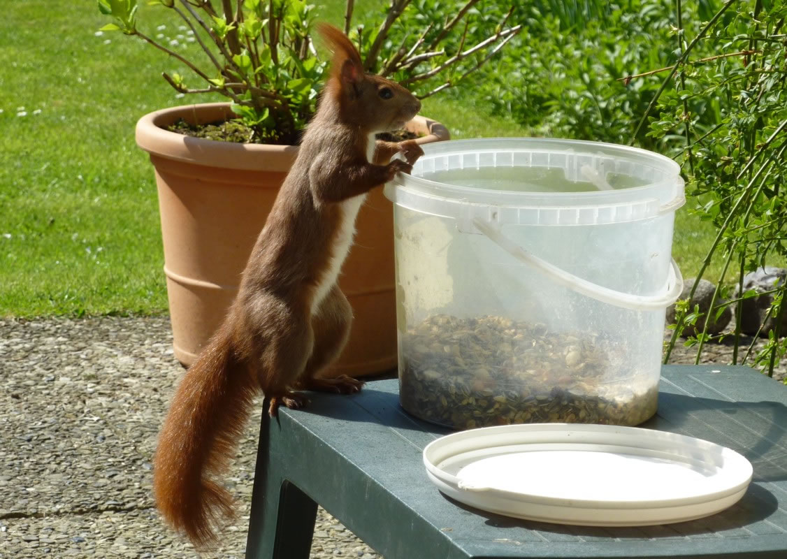 streut wohl jüst de Körner ut, de Dompfaffen geern freten.