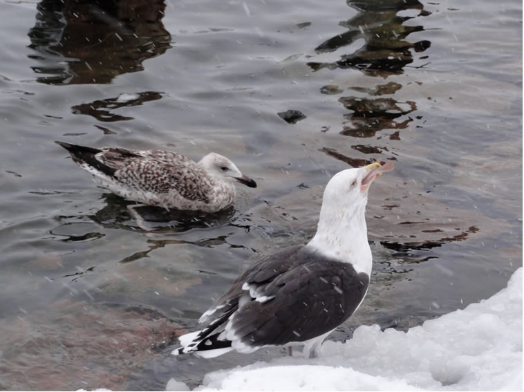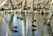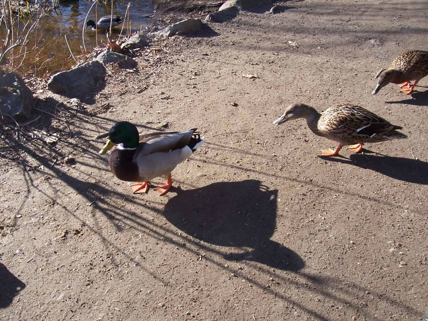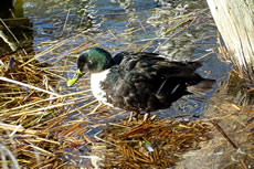 Glieks kemen welk answommen un kladdern ok up dat Ies. Dat weer en fröhlich Gesnatter. Immer mehr Aanten kemen an. Welk weern al an't Gründeln. En Aantenfru bleev aver lever up enen Reethupen in de Sünn. Se blinzel mi an, as wull se seggen: "Mi is dat Water noch to koolt!"
