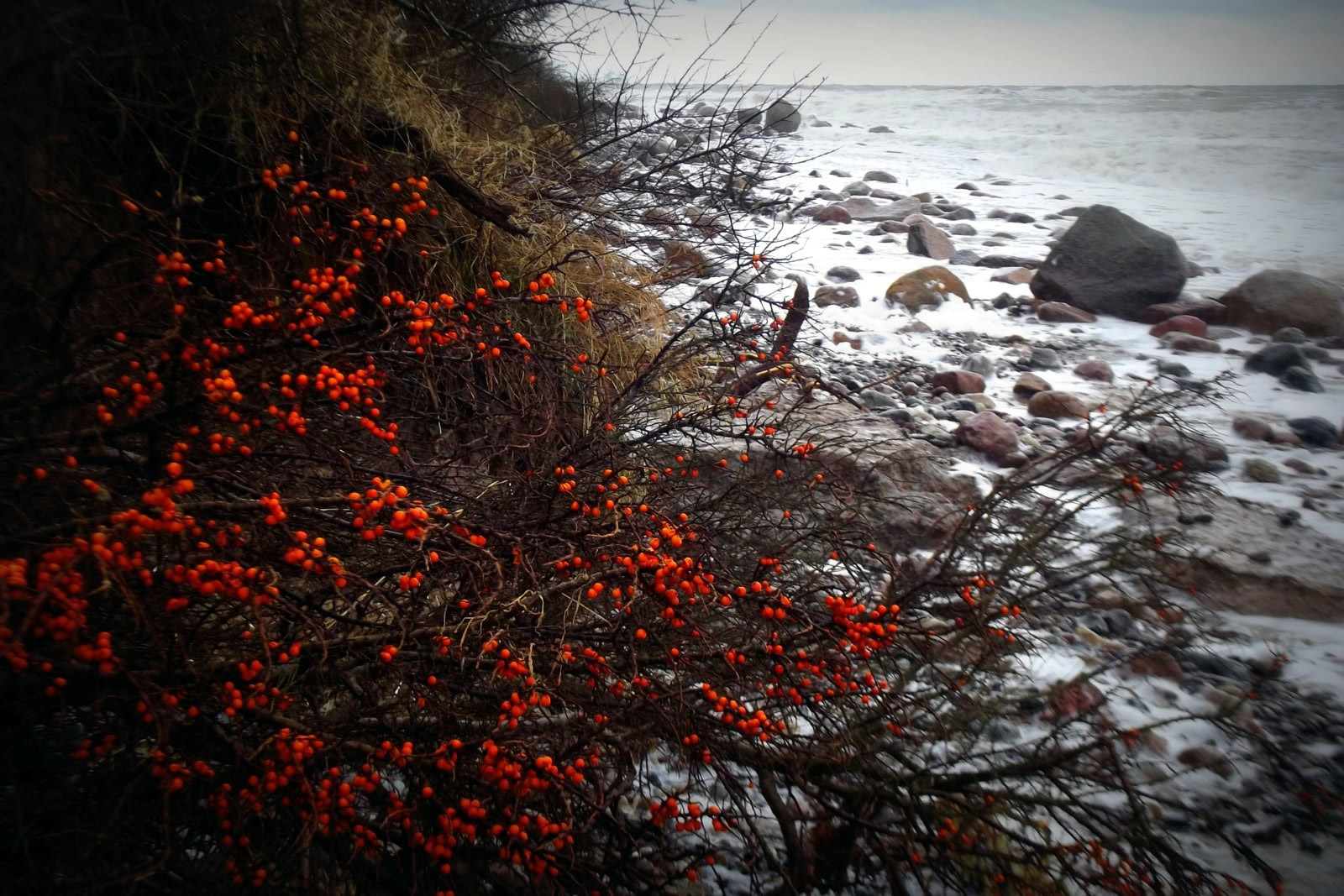 Dat müssen wi uns doch wat genauer ankieken. "Dat is wieder nix as frisches Seegras", meen mien Mann. Ik heff dat aver genauer ünnersööcht. De düsterroden Planten weern ganz besünners smuck. As ganz fines un zortes Astwark legen de dor dicht an dicht in den Sand. Dorvör, noch meist in't Water, legen mank de Steen gröne Planten. De erinnern mi an frischen Salat.