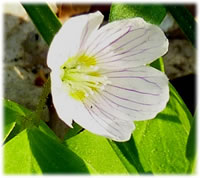 Up de Söök na dat wilde Vijöölchen keken mi in den Woold luder witte Steerns an. Mank de blagen Blöden vun Vijöölchen lüchen se ut dat düstergröne Moos. Dat weer'n Blöden vun den Wooldsuurklever, smucke witte Blöden mit zartlila Adern. Se stünnen so dicht neven eenanner, dat ik se vun Wieden meist mit Anemonen verwesselt harr. Aver ne, dat weern Blöden vun den Wooldsuurklever mank de hellgröön Kleverbläder.