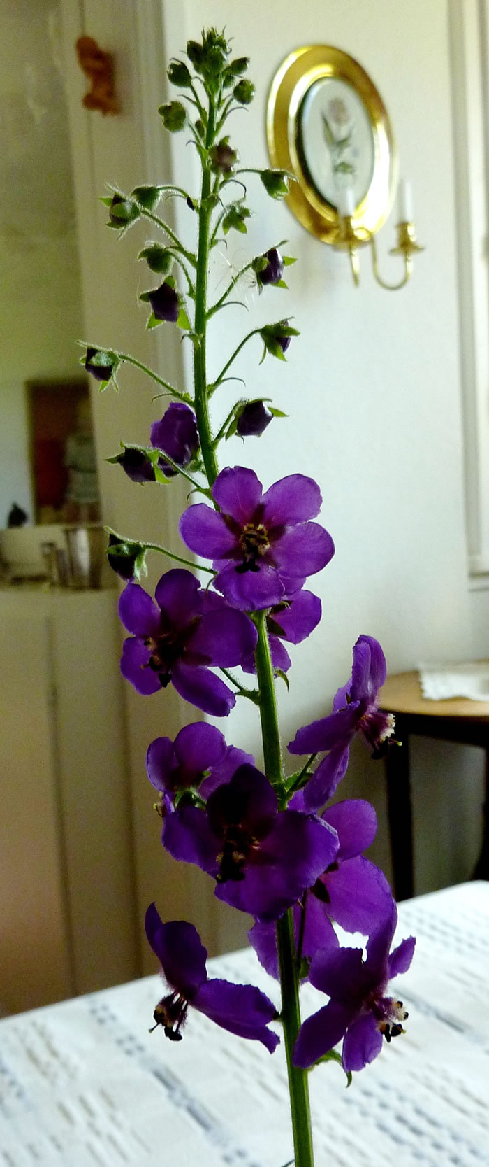 Naam En poor Daag later heff ik noch en Purpur-Königskerz funnen. Se stünn an den Stratenrand vun mien Naversch. Rank un slank mit acht upblöhte Blöden. Dat weer en Prachtexemplar. Wat heff ik mi freut, dat mien smucke Bloom nu enen Naam hett! Se is mi un mien Frünnen nu bekannt. Villicht wasst in't neegst Johr noch mehr vun de smucken Purpur-Königskerzen an unsen Stratenrand. De Biller köönt Se per Klick