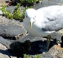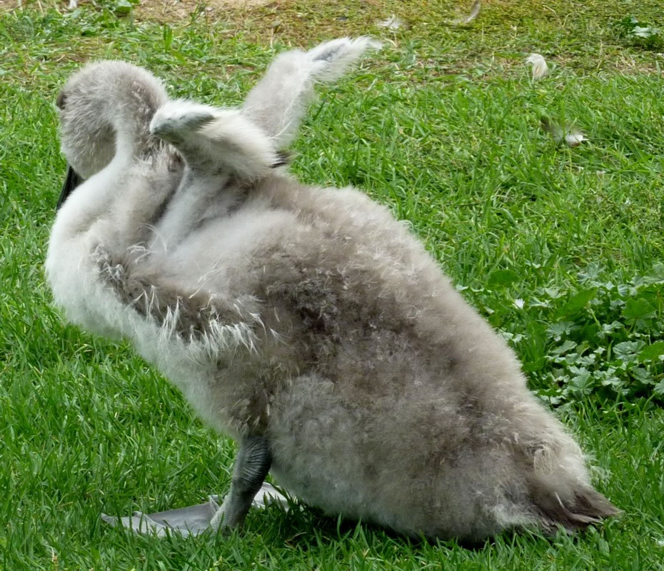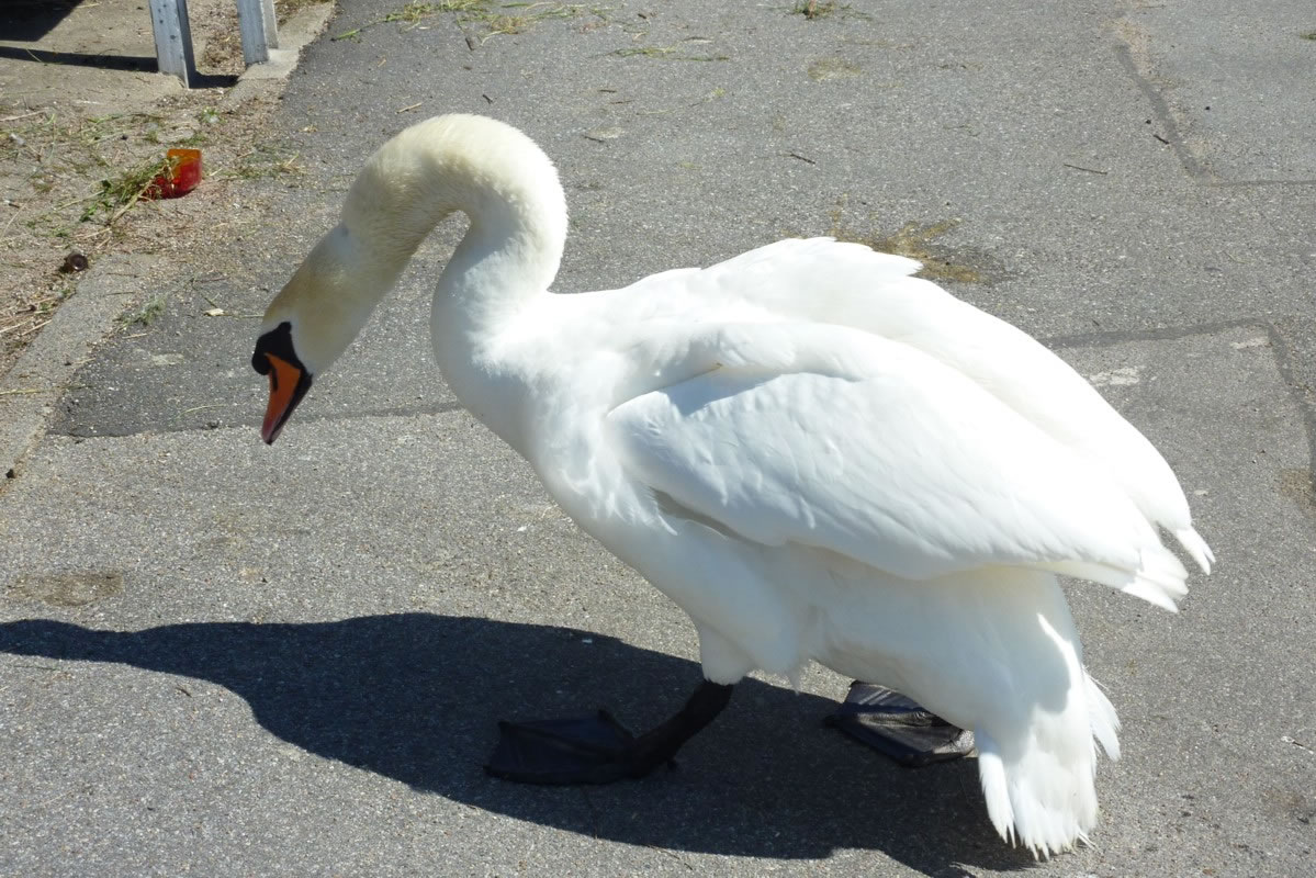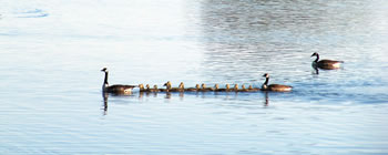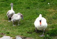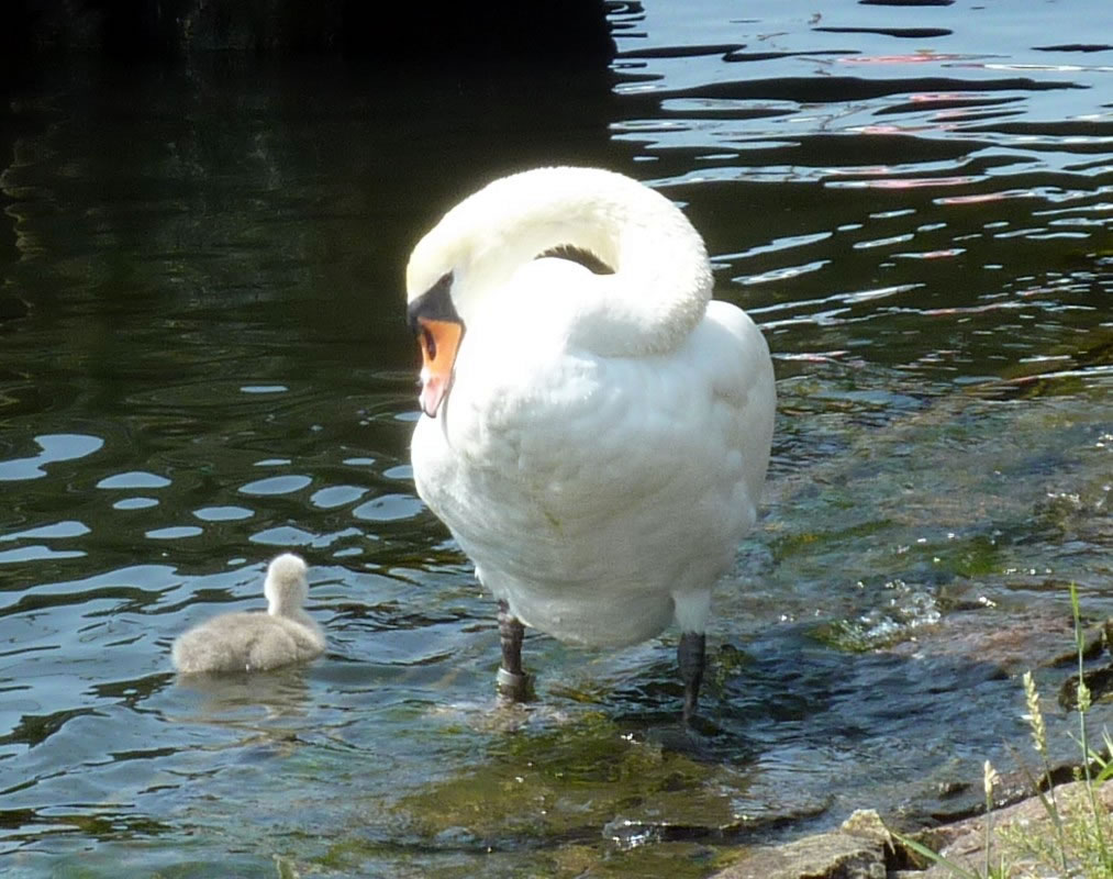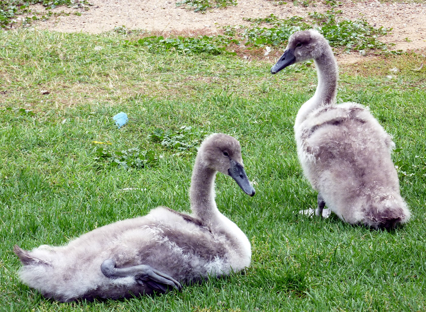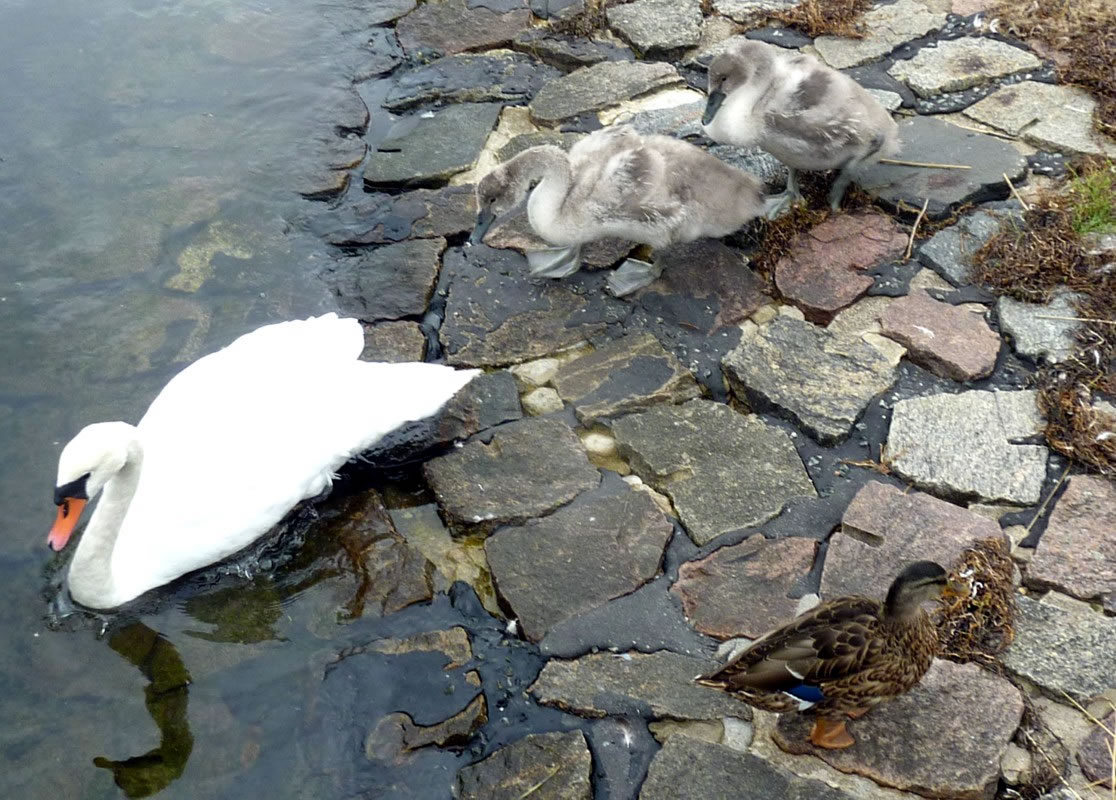 Vadder un Modder passen beide goot up ehr Gössel up. Se leten se nich ut de Ogen. Ik dörf nich to dicht mit mien Knipskassen rankamen. Denn zischen se mi an. Se wiesen ehr Kinner den Weg över de Straat up de grönen Rasen. Dor geev dat frisches Gras. De lütten Gössel un ok de Öllern leten sik dat goot smecken. De Nonnengöös harr ik al mal as Togvagels in Harvst an de Noordsee beluurt. Dor gifft dat regelrecht Nonnengöösdaag. Hunnerte vun Vagels kemen ut den Noorden. De mehrsten flögen wieder. Up de saftigen Wieschen hebbt se sik eerstmal so richtig satt freten. Dor sünd denn wull mal enkelte Vagels hier bi uns bleven. De Biller köönt Se per Klick