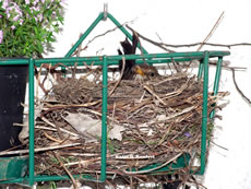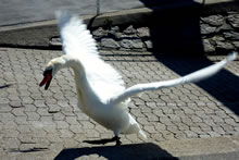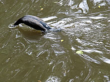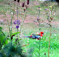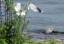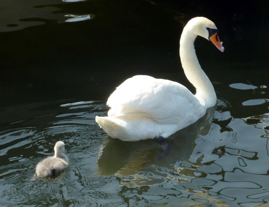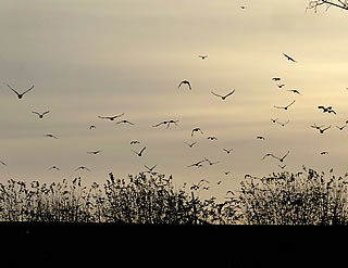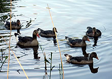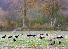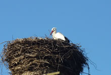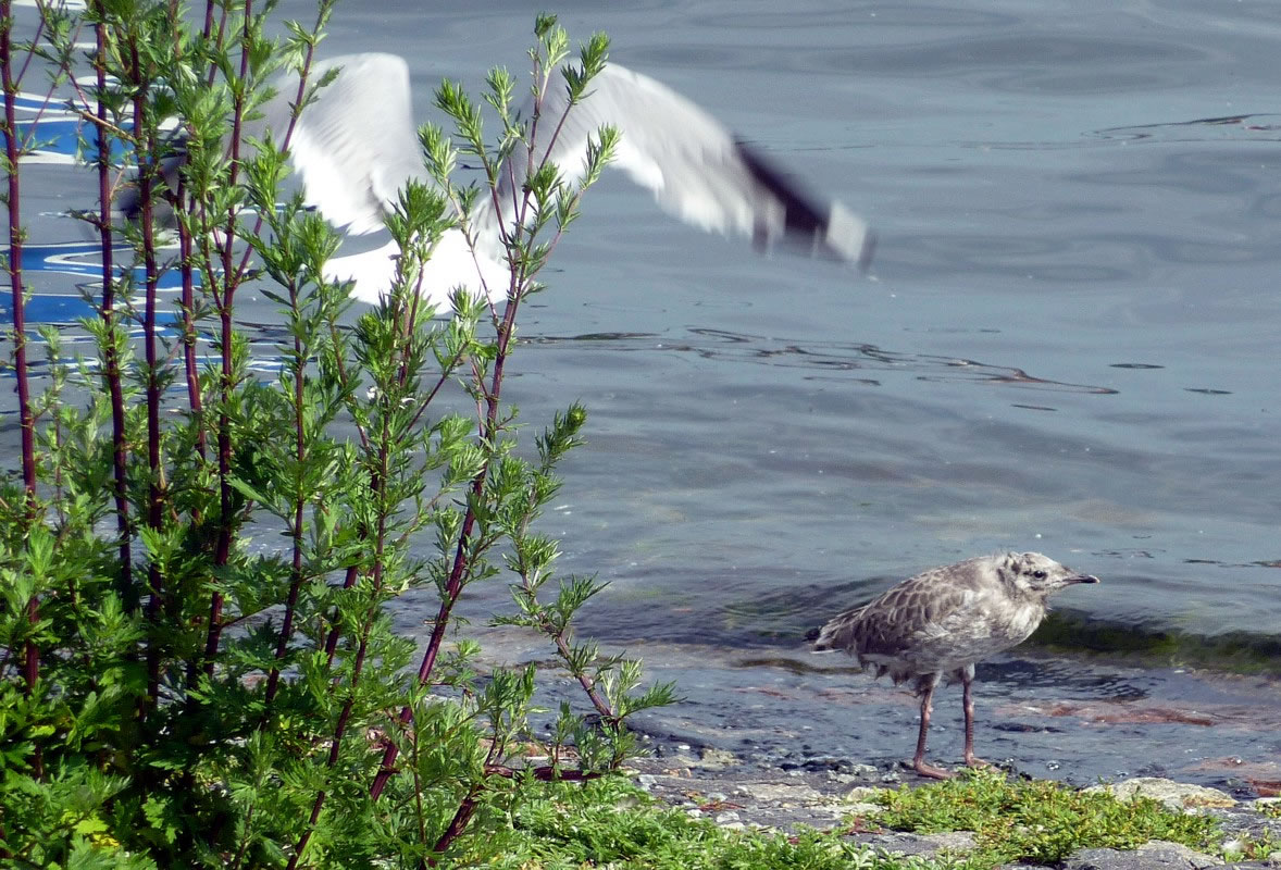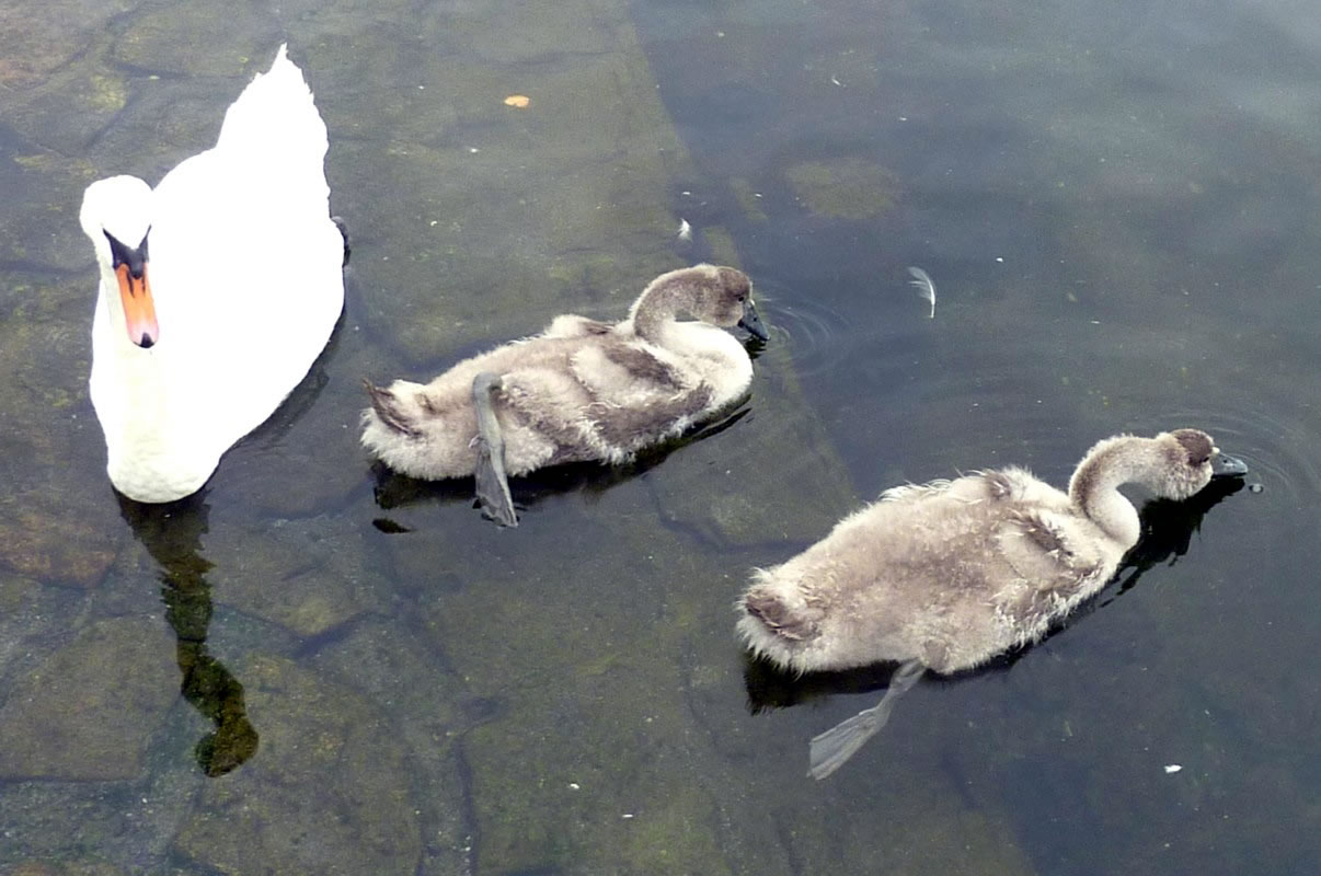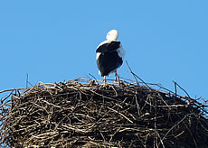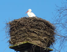 Dorna güng dat wedder na de ünnere Tränke. De viseteeren se nochmal wat ganauer un snattern miteenanner. Ehr'n Döst harrn se löscht, aver för en Nestbu nehm se ehr Eier leggen kunnen, weer hier in düssen Goorn nich de richtige Placken. Se nicken sik mit de Köpp to, breden de Flünken ut un flogen dorvun. De Biller köönt Se per Klick