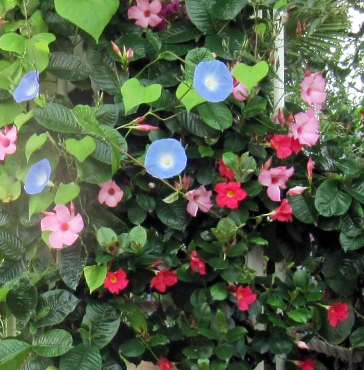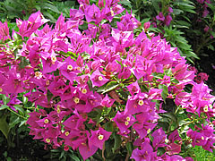 Ik heff gistern in enen Goorn vun Lüüd, de wi kennt, ene över un över blöhen Bougainvillea-Plant sehen. Un dor is mi infullen, dat wi in Portugal mal en Brüch sehen hebbt, de weer total lilafarven ümrankt. Un de Plant, de sik dor in de pralle Sünn so utbreedt harr, weer de Bougainvillea. Ik heff staunt, denn bi uns kenn ik de Bougainvillea blots in Pötte. Nie harr ik dacht, dat de so üppig wuchern un blöhen kann.