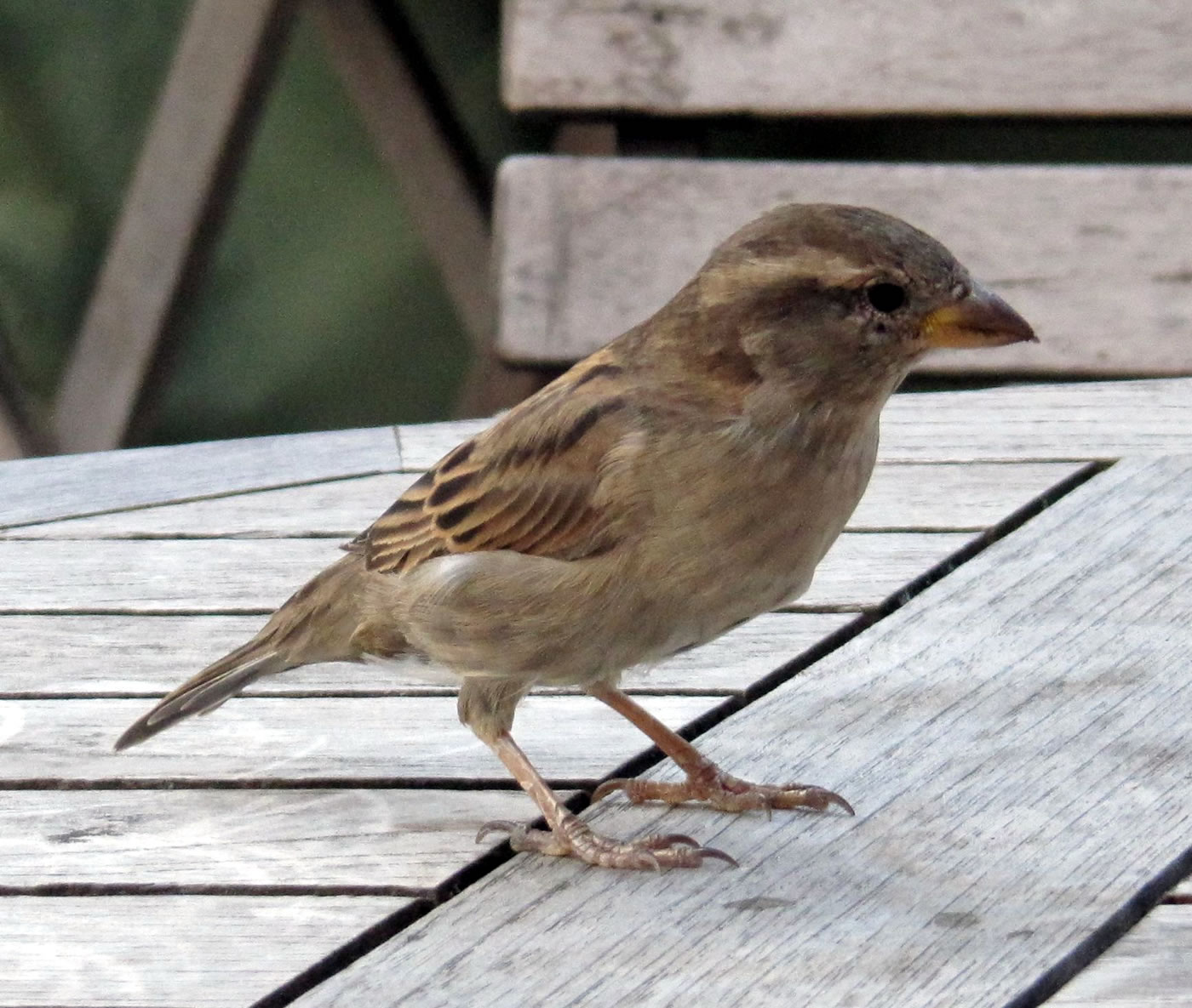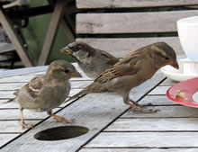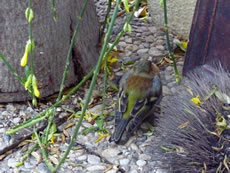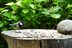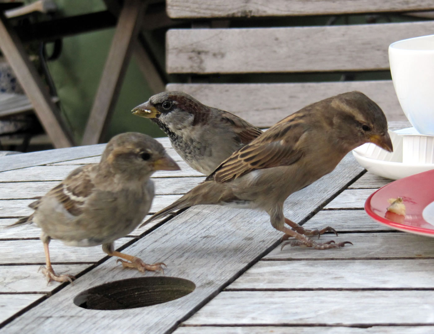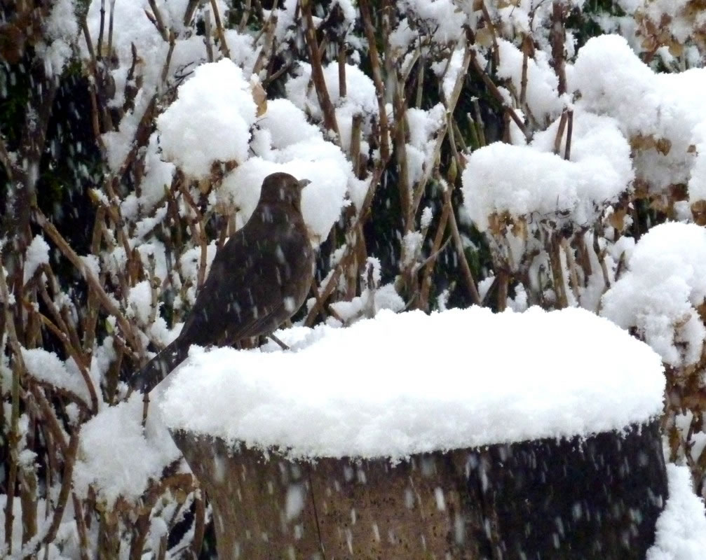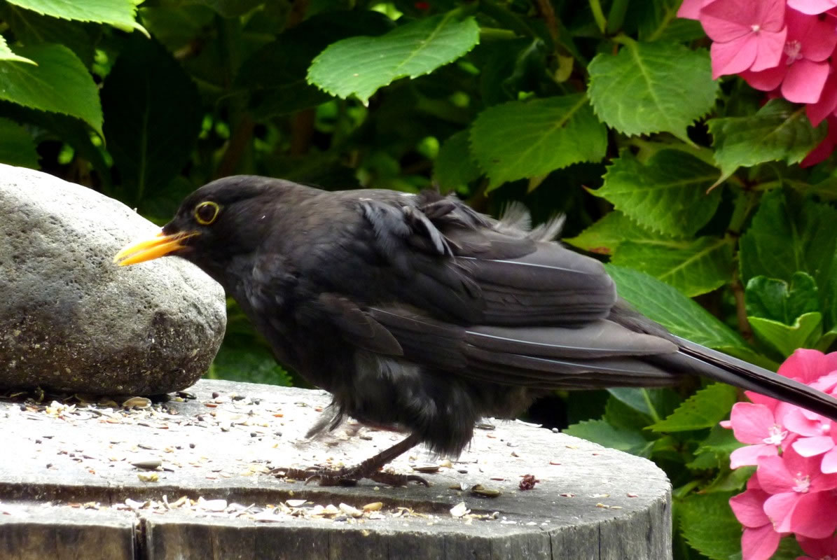 As ik na'n lütt Stunnstiet wedder rut keem, dor bleev ik miteens up'n Stutz stahn. De Vagels harrn miene niege Kumme to'n Badeplatz maakt. Graad tummeln sik dor mehre Blaumeisen in. En lütt Meisje seet mirrn in mien niege Schöttel un sprütt as dull üm sik rüm, denn hüpp se up den Schöttelrand un schüttel sik düchtig ut un denn glieks wedder rin in dat Natt un den Kopp ünnerdükern. Nee, weer dat possierlich! Mien leef Mann harr ja wohl bi't Rasensprengen de Schöttel vull Water "sprengt". Orrer sull dat Afsicht west sien? Up jeden Fall wüß ik nu, woto se bruukt warrt, de Schöttel. Se warrt uns Vageltränke! Veel Freud hebbt wi hatt an dit besünner Geschenk. Wi hebbt tokeken, wenn dat Rotkehlchen baadt hett, orrer de Finken. De Grünlinge kemen glieks mit de hele Familie. Wenn aver de Amsel keem, denn müß ik achteran frisch Water ringeten, so weer de jümmers an't Planschen un Sprütten. Anke Nissen