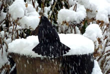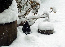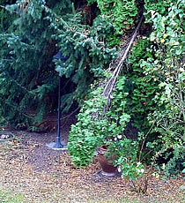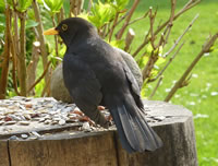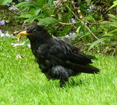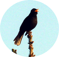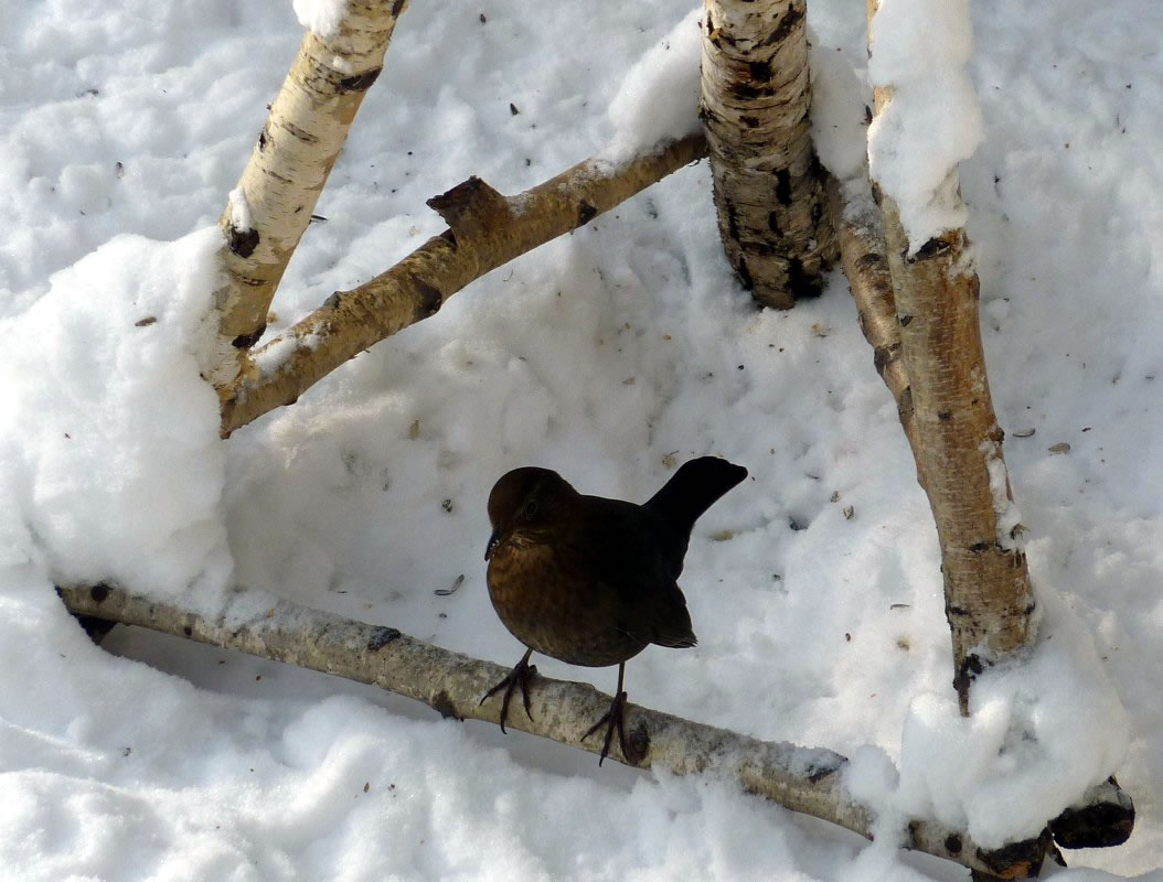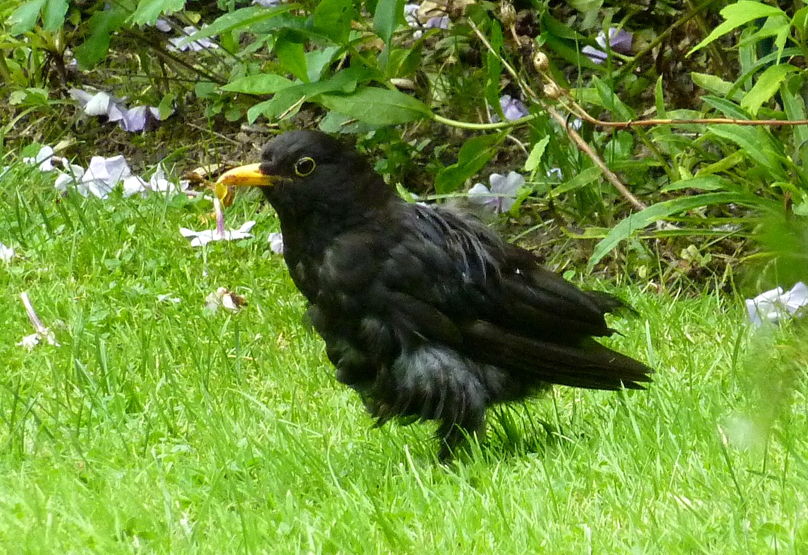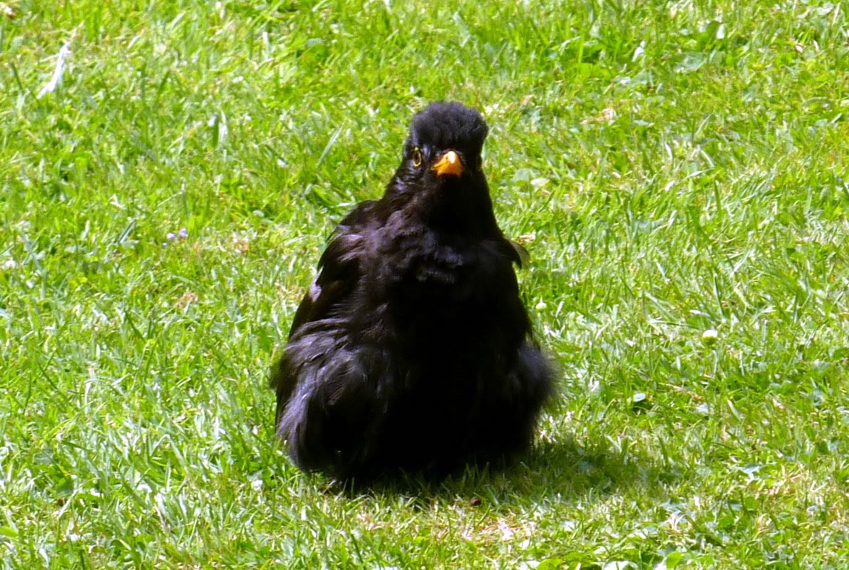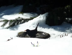 Up dat hüüt bi den stiefen Wind mit dat Avendleed vun de Amsel wat warrd? Ik weet nich so recht. De kann sik ja gor nich up de böberste Spitz vun de Dann hollen! Aver se keem wedder anflagen. Flatter üm den Dannenboom un balanceer up de Spitz. Endlich harr se dat schafft. Krall sik an de Dannennadeln fast un smetter wedder ehr Avendleed. Dat weer en reine Freud. Ut Navers Goorn keem sogoor en Anter. Neegsten Dag harr se dat lichter. De Wind weer inslapen un de Avendsünn warm ehr dat Fedderkleed. De gele Snavel lüüch richtig in de Sünn. Kunnst sehn, dat ehr dat Singen Freud möök. Un so geiht dat jeden Avend. Sülvst Regen kann de Amsel nich dorvun afhollen, uns en Ständchen to bringen. Wi hebbt ehr enen Naam geven. Dat is unsen Caruso! De Biller köönt Se per Klick